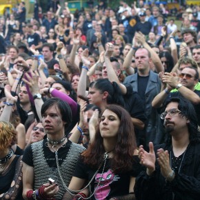 Freitag, der 16. Juli 2004 – ein Linienbus brachte mich und meine riesengroße Tasche voller schwarzer Klamotten von Berlin nach Hof. Von dort dann (nach einem Abstecher in einen Supermarkt, der wirklich sehr viel verkauft…) per PKW mit der wandernden Sonne Richtung Loreley am Rhein. Die Fahrt verlief bis auf eine plötzlich notwendige Umleitung (es war wirklich boshaft: ein Unfall auf einer solch engen Straße!) kurz vor dem Ziel ohne Stau, Unfälle, Wetterunbilden oder anderen sonstigen Misslichkeiten. Die Fahrt auf der Straße am Rhein entlang bot wunderschöne Ausblicke auf romantische Städtchen. Von den Höhen drohten Burgen herab. Der Fluss wand und bog sich schnell strömend. Als Flachlandtiroler begeisterte mich dieser Anblick sehr und ich war in Hoch-Stimmung. Dann die Loreley. Überraschung: schon oben war dann der direkte Weg versperrt. Im Rahmen einer groß angelegten Polizei-Aktion wurden alle Ankommenden nach Drogen und Waffen durchsucht. Fand ich okay. Ärgerlicherweise durfte ich mir meinen Leibes-Visitor NICHT aussuchen…