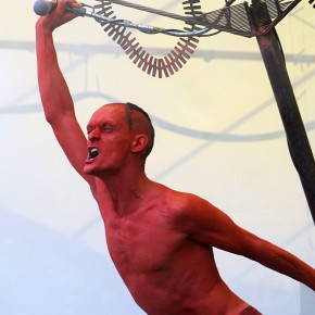 Jedenfalls bot uns „Skinny Puppy“ dann in aller Trockenheit ein Schauspiel des Irrsinns. Ich meine, einen Knall haben wir ja mehr oder weniger alle. Dieser Sänger jedoch scheint total durchgeknallt zu sein. Aber man muss ihn mal live erlebt haben – drückt er doch auf seine Art Gefühle aus, die uns oft umtreiben und uns keine Ruhe gönnen. Das skurril anmutende Outfit verstärkte den Eindruck, in eine Alp-Traum-Welt abgetaucht zu sein. Krass wurde die Welt, wie sie ist, durch die Videos ins grelle Licht gesetzt.
