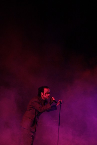 Ungeachtet dessen, wer vor ihnen auf der Bühne stand oder diese nach ihnen betreten mag, Oomph! sind immer ein Garant für hervorragende Stimmung. Werden die fünf Wolfsburger (live tritt man ja mit Verstärkung an) eigentlich niemals müde? Sänger Dero hatte das Publikum von Beginn an „unter seiner Kontrolle“. Ein irres Grinsen. Ein verrückter Blick. Das ist Dero. Als Sänger in vielen Jahren gereift. Als Showman irgendwie auch. Eine unbeschreibliche Begeisterung auslösend, spielten Oomph! ältere wie neue Stücke und wie sollte es anders sein: Eckstein, Eckstein, alles muss versteckt sein – bei „Augen auf“ wurde lauthals mitgezählt und -gesungen.