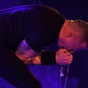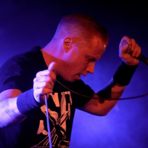 So war die Veranstaltung restlos ausverkauft und der Berliner Club „Bi Nuu“ bereits bei der Vorgruppe „No Sleep By The Machine“ sehr gut gefüllt. Und die skandinavische Band konnte sogleich viel Aufmerksamkeit auf sich ziehen. Zu Recht. Verstanden es die drei Schweden doch, eine musikalische Spannung aufzubauen. Kein einfallsloses Gestampfe, sondern Rhythmik mit Atmosphäre und Detailreichtum, was für den intensiven Hörer so manche Entdeckung bereithielt und -hält. Interessant beispielsweise die rau klingenden Percussions bei dem Titel „Yellow mica“. Dazu eine eingängige Melodieführung, die sich im Kopf festsetzt. „No Sleep By The Machine“ stehen für einen differenzierten Sound, ganz in der Tradition solch wegweisender Bands wie „Skinny Puppy“ und „The Klinik“. Im Mittelpunkt Sänger TB, der voller Leidenschaft und gestenreich das Dargebotene unterstrich. Mit intensivem, durchdringendem Blick musterte er jeden Einzelnen in der ersten Reihe. Überaus energisch vorgetragen konnten die mal direkteren, mal komplexeren Strukturen begeistern. Ein grandioses Konzert, das schon vor dem Höhepunkt des Abends für viel Freude sorgte.