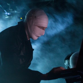 Nachdem alles für den Auftritt von „The Klinik“ bereit stand, vergingen endlose 30 Minuten, in denen eine Augenoperation auf die Hintergrundwand projiziert wurde (Bilder, die wohl nur wenige mit großer Begeisterung betrachteten), ehe endlich Dirk Ivens und Peter Mastbooms – traditionell in schwarze, lange Mäntel gekleidet und die Köpfe mit Mullbinden bandagiert – die Bühne betraten. Durch die Verhüllung wirkten die beiden Protagonisten alterslos. Als wäre seit dem ersten Auftritt von „The Klinik“ nicht über ein Vierteljahrhundert vergangen.