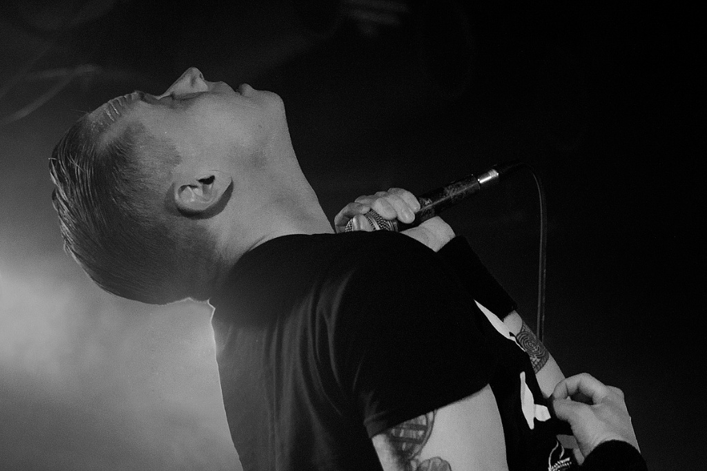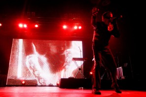 So war die Veranstaltung restlos ausverkauft und der Berliner Club „Bi Nuu“ bereits bei der Vorgruppe „No Sleep By The Machine“ sehr gut gefüllt. Und die skandinavische Band konnte sogleich viel Aufmerksamkeit auf sich ziehen. Zu Recht. Verstanden es die drei Schweden doch, eine musikalische Spannung aufzubauen. Kein einfallsloses Gestampfe, sondern Rhythmik mit Atmosphäre und Detailreichtum, was für den intensiven Hörer so manche Entdeckung bereithielt und -hält. Interessant beispielsweise die rau klingenden Percussions bei dem Titel „Yellow mica“. Dazu eine eingängige Melodieführung, die sich im Kopf festsetzt. „No Sleep By The Machine“ stehen für einen differenzierten Sound, ganz in der Tradition solch wegweisender Bands wie „Skinny Puppy“ und „The Klinik“. Im Mittelpunkt Sänger TB, der voller Leidenschaft und gestenreich das Dargebotene unterstrich. Mit intensivem, durchdringendem Blick musterte er jeden Einzelnen in der ersten Reihe. Überaus energisch vorgetragen konnten die mal direkteren, mal komplexeren Strukturen begeistern. Ein grandioses Konzert, das schon vor dem Höhepunkt des Abends für viel Freude sorgte.