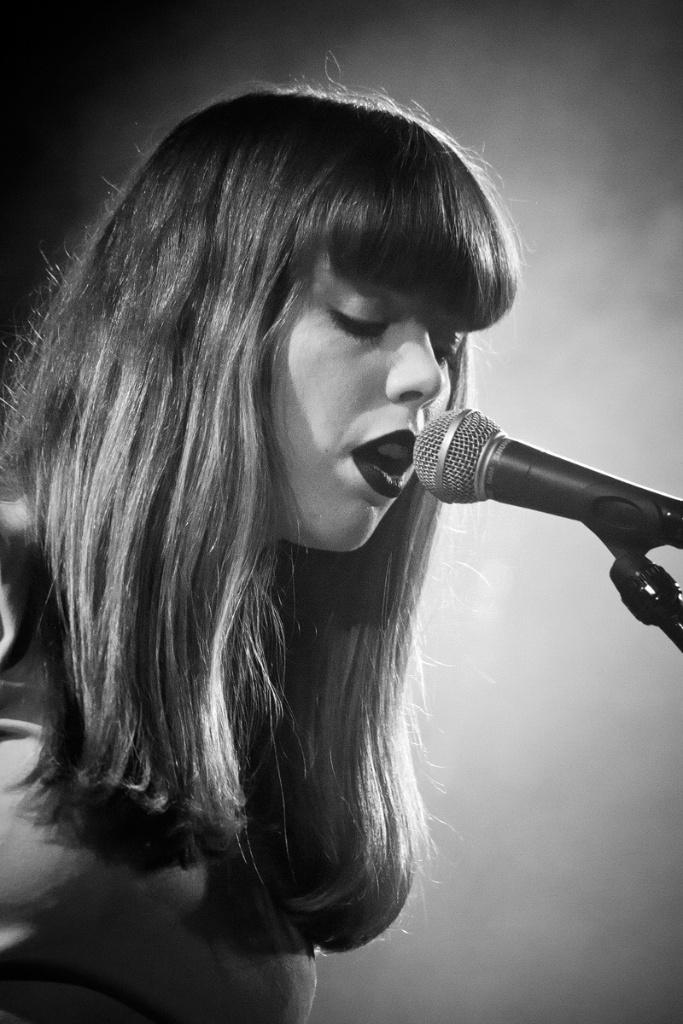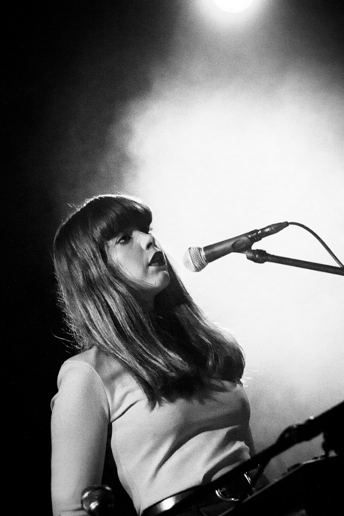Doch ehe „Algiers“ den Anwesenden musikalisch einheizen sollte, eröffnete eine mir bis dato vollkommen unbekannte Band: „Jupiter-C“. Das Duo aus Manchester beschreibt seinen Sound als „zerbrochene Melodien“ und „dissonanten Krach“. Hypnotisch legte sich die zarte, sanfte Stimme von Ashiya Eastwood über verschwommene Gitarrenriffs von David Kane und dunkel gefärbt, synthetische Klänge und Rhythmen. Ein interessanter Auftritt, der sich jedoch – man möge es mir in Anbetracht der folgenden, mehr als mitreißenden Darbietung bitte verzeihen – nicht nachhaltig ins Gedächtnis brennen konnte. Sicherlich werde ich mich aber noch eingehender mit den minimalistischen, kalten Klängen von „Jupiter-C“, deren Debüt-EP vor einem Jahr erschienen ist, beschäftigen.