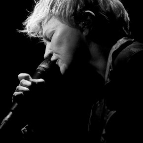 Für ruhige Momente sorgte herrBs zeitweiliges Spiel auf der Akustikgitarre. Die weichen und schmeichelnden Töne betonten die ernsten Texte zusätzlich. Der kräftige immer wieder aufwallende Beifall zauberte Anne Clark ein ganz leichtes Lächeln um die Mundwinkel.