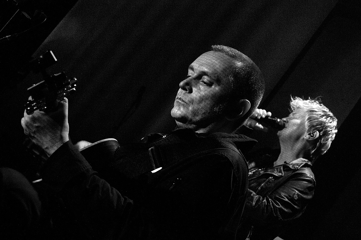 Für ruhige Momente sorgte herrBs zeitweiliges Spiel auf der Akustikgitarre. Die weichen und schmeichelnden Töne betonten die ernsten Texte zusätzlich. Der kräftige immer wieder aufwallende Beifall zauberte Anne Clark ein ganz leichtes Lächeln um die Mundwinkel.