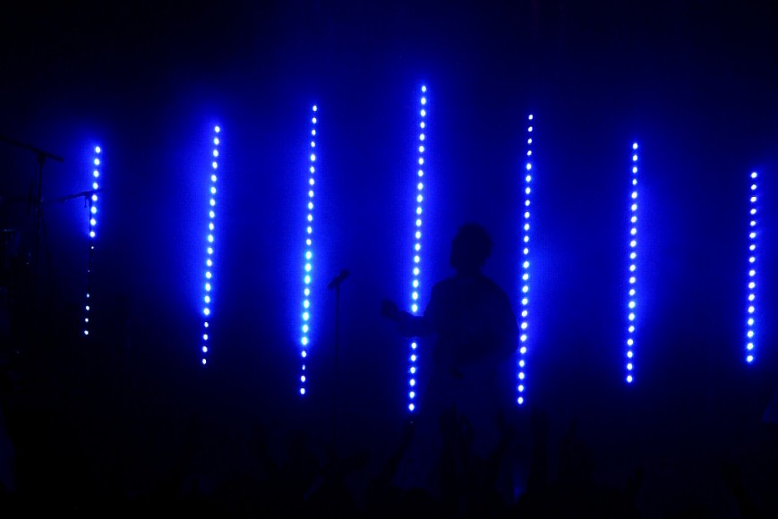 Ob nun Songs vom aktuellen Album “Wahrheit oder Pflicht“ oder auch von älteren Scheiben wie „Sperm“ von 1993 dargeboten wurden…das Publikum war begeistert und fasziniert. Man konnte gar nicht fassen, wie schnell der Hauptteil der Show vorbei war und die ersten Zugaberufe Oomph! zurück auf die Bühne forderten. Die beiden aktuellen Hits „Brennende Liebe“ und „Augen auf“ durften selbstverständlich nicht fehlen. Das Publikum dankte es durch lautes Mitsingen und -zählen (Eckstein, Eckstein, alles muss versteckt sein). Wie schon bei anderen Songs kam auch hier der Projektor zum Einsatz. Im Hintergrund flimmerten Ausschnitte aus den Videos über die Leinwand. Die Band konnte noch zu einer weiteren Zugabe „überredet“ werden. Als Abschluss gab es die fast schon traditionelle a Cappella-Einlage von „Mein Herz“. Wer wollte durfte dann noch einmal bei „Always on my mind“ mitsingen…