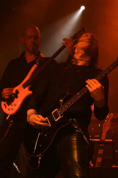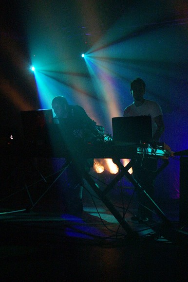 Dann endlich das große Ereignis – der Vorhang gleitet auseinander. Ronan von „VNV Nation“ und Joakim von „Covenant“ tragen einen Tisch aus der Hinter-Welt auf die Bühne. Technik! Elektronik! Und das mit Ronan. Also ich gebe zu: ich bin kein Computer-Fachmann respektive -Fachfrau. Aber eine Tochter der Firma, bei der ich angestellt bin, verwertet Elektronikschrott. In den Schrottcontainern sieht es eigentlich nicht viel anders aus, als auf dem Tisch.