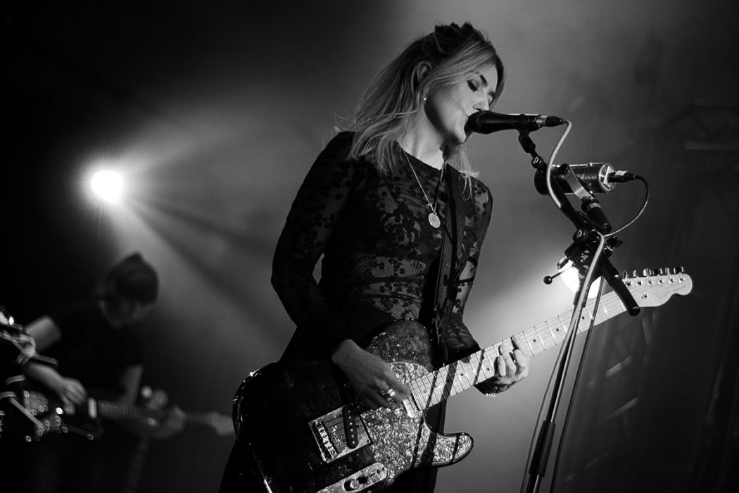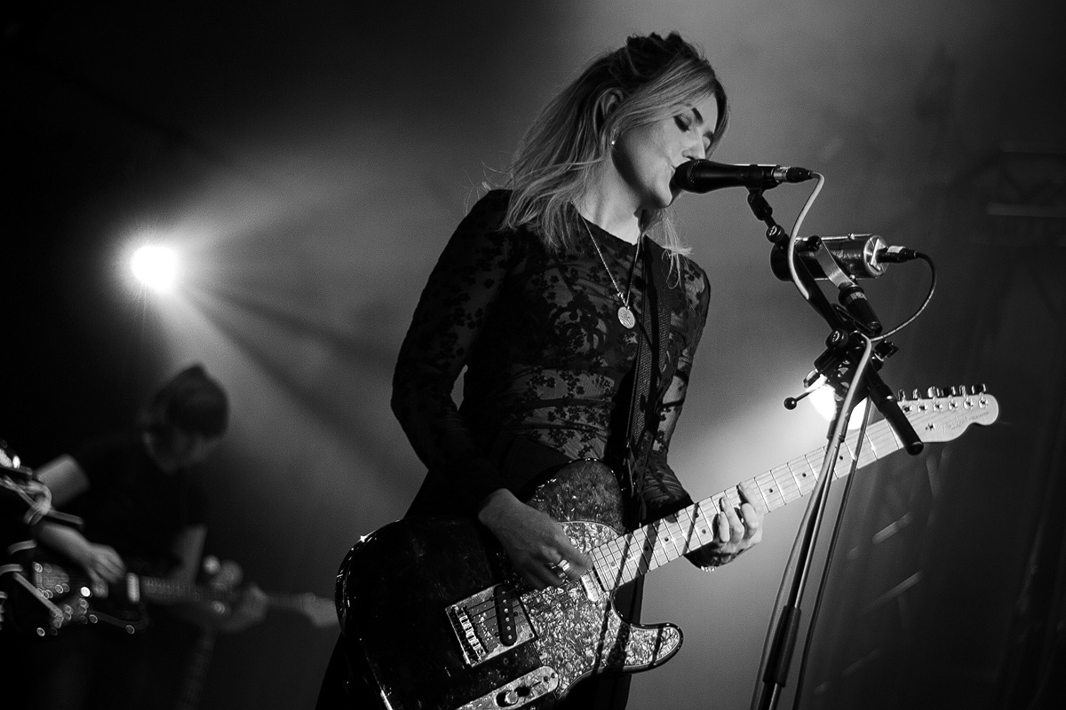 Nachdem der Support „Queen Kwong“ eine halbe Stunde mit teils repetitivem Noise Rock die bereits zahlreich anwesenden Gäste musikalisch eingestimmt hatte, wurde das Publikum auf eine Geduldsprobe gestellt. Etwa 40 Minuten dauerte es, ehe Laura-Mary Carter (Gesang, Gitarre) und Steven Ansell (Gesang, Schlagzeug) die Bühne betraten und einen schweißtreibenden Abend mit „Elijah“ vom Anfang des Jahres erschienenen Album „Get Tragic“ einleiteten. Eine Veröffentlichung, die nach einer schöpferischen Pause und einer schweren Zeit eine Art Neuanfang darstellt. Es folgten zwei weitere neue Stücke, bei denen das englische Duo ebenso wie bei der Konzerteröffnung von der ehemaligen „Grammatics“-Musikerin Lindsay Wilson (Bass) und „Tigercub“-Schlagzeuger James Allix (Elektronik) unterstützt wurde, bevor man das zunehmend euphorisierte Publikum wieder zu zweit auf eine Reise durch die Bandgeschichte mitnahm. Druckvoll und mit reichlich Energie präsentierten „Blood Red Shoes“, deren märchenhaft und doch makaber klingende Name auf die blutig getanzten Füße der Schauspielerin Ginger Rogers zurückgehen soll, dröhnende wie raue Passagen neben eingängigen Melodien. Proportional zur anwachsenden Tanzwut vieler Gäste nahm der Sauerstoffgehalt der Luft ab. Nach und nach war ein Großteil der Konzertbesucher in Bewegung. Einzig auf den beiden Emporen und an den Rändern hielt man sich dezent zurück. Mit einem einprägsamen Refrain, den man herrlich mitsingen bzw. -schreien konnte, bildete „Light It Up” einen gefeierten Ausklang des „Mittelteils“ dieses Konzerts. Anschließend kamen die beiden Gastmusiker zurück auf die Bühne, um das Publikum mit viel Schwung und Leidenschaft zurück in die Gegenwart zu befördern und vier zusätzliche Titel vom letzten Album vorzustellen. Sichtlich zufrieden und dankbar verschwanden „Blood Red Shoes“ nach 17 Songs im Backstage. Natürlich nicht ohne den heftigen Applaus und das Bitten nach Zugaben zu erhören. So kam das Berliner Publikum in den Genuss von drei weiteren Stücken, deren Anzahl im Rahmen der aktuellen Tour offenbar kein Standard ist. Viele der Anwesenden stürzten sich ein letztes Mal ins Getümmel. Nach knapp 85 Minuten entließen die bejubelten „Blood Red Shoes“ viele zufriedene Gesichter in die Berliner Nacht…