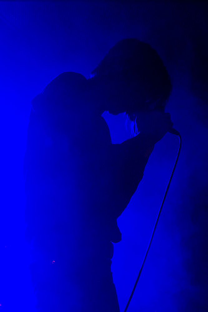 Die australische Band „Ascetic:“ eröffnete den musikalischen Abend mit düsteren und vor allen Dingen hypnotischen Klängen, mit denen eine schwermütige, sehnsuchtsvolle und kalte Atmosphäre kreiert wurde. Sänger/Bassist August Skipper – ein sehr schlanker und filigran wirkender junger Mann – schien sich wie in einer anderen Welt zu bewegen. Voller Leidenschaft gab er sich den Liedern hin. Es schien, als würde seine Stimme vom gesamten Körper erzeugt. Das Biegen, Wiegen, Krümmen und Stampfen synchron zum Rhythmus transportierte die Dynamik der Stücke in die Zuhörermenge. Das Duo faszinierte und begeisterte das Publikum gleichermaßen. Leider ließ der straffe Zeitplan keine Zugabe zu.