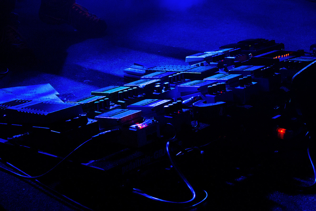 Ungeduldig wurden somit „ChameleonsVox“ erwartet. Die britische Band – ursprünglich unter dem Namen „The Chameleons“ 1981 gegründet und 2002 aufgelöst – gilt als unterschätzter Mit-Wegbereiter des Post Punk. Seit einigen Jahren sucht sich Sänger/Bassist Mark Burgess Musiker, mit denen er gemeinsam voller Begeisterung und Temperament die melancholisch rockigen Songs zurück auf die Bühne bringen kann. Der Funke zwischen Publikum und Band sprang sofort über. Köpfe und Beine zuckten. Teilweise wurde ausgelassen getanzt. Mitreißend die „alten“ Stücke, die vielen im Publikum vertraut waren und so manchen zum fröhlichen Mitsingen veranlasste. (Was wohl glücklicherweise im „Klanggewitter“ unterging.) Neben der Leidenschaft, die die fünf Musiker transportierten, beeindruckte ein zweireihiges, etwa ein Meter langes und mit Trittschaltern ausgestattetes „Pult“. Zahlreiche Effekte wurden hier per Fuß gesteuert. Die variantenreichen und eingängigen Klänge rissen die Zuhörer zu reichlich Applaus hin. Auch meine Handflächen brannten. Das persönliche Kopfkino ließ mich innerlich hüpfen wie ein kleines Kind und die Emotionen im Geiste herausschreien. Die Begeisterung schlug hohe Wellen. Einfach große Klasse!