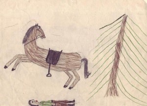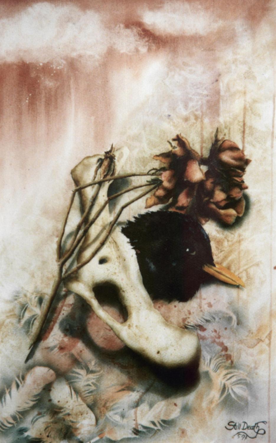 Frühzeitig bannte Christine ihre Eindrücke und Phantasien auf Papier. Katastrophen, der Tod nahestehender Menschen, Gruselgeschichten – die Gedanken hierzu mussten raus aus den Kopf. Auch wenn sich die anfänglichen Ergebnisse auf Papier eher enttäuschend ausnahmen. Anregung für die ersten düsteren Bildnisse waren der Tod des Uropas und der Unfall eines Reiters. Die Faszination für das Gruselige hat sich jedenfalls bis heute erhalten.