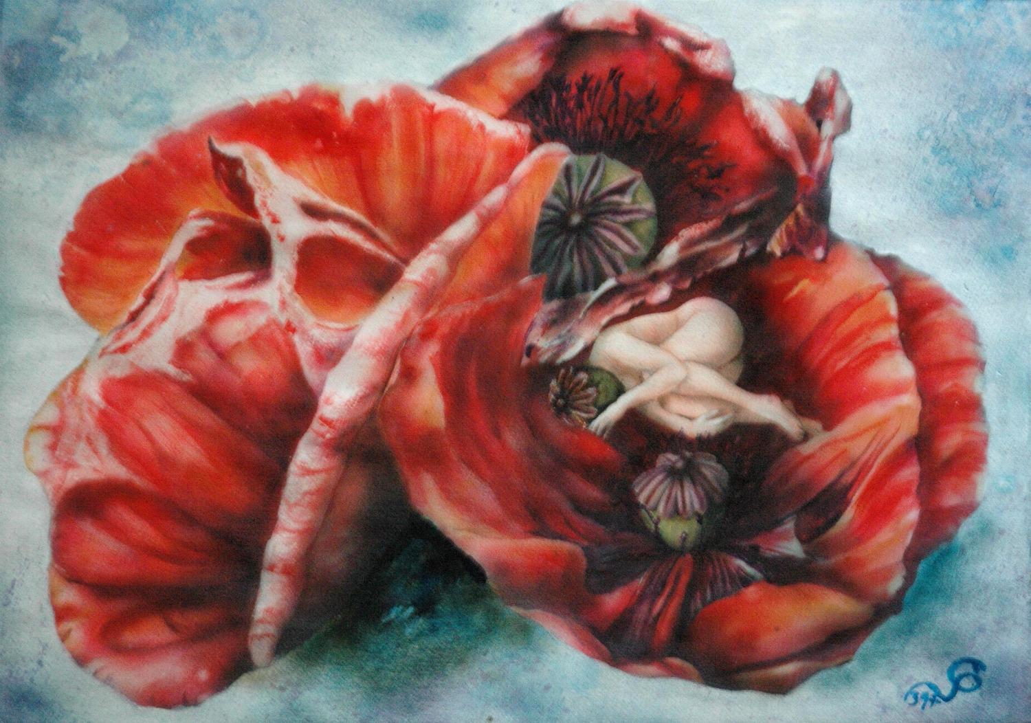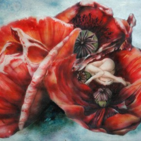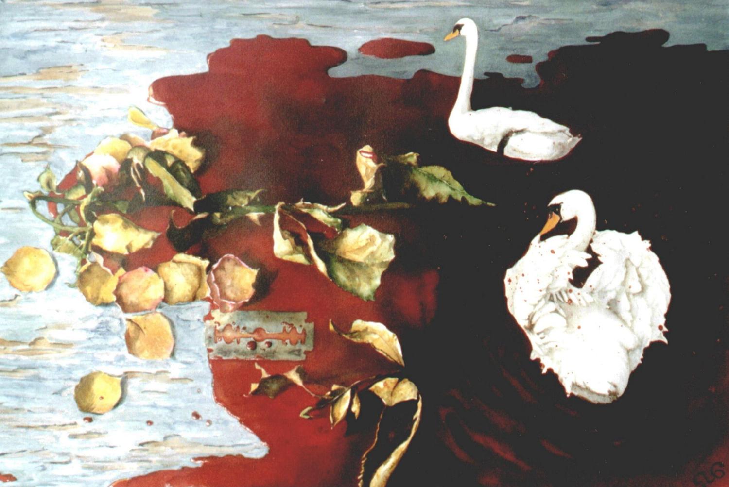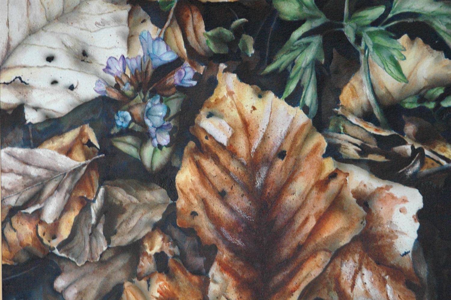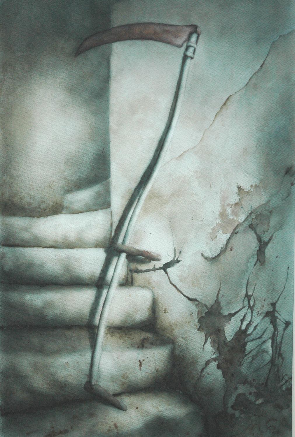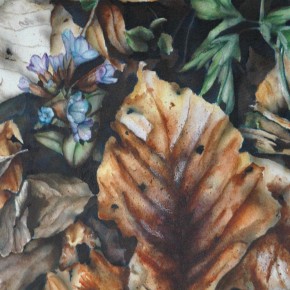 Und so ranken sich alle Werke von Christine um Verfall und Schönheit. Landschaftsbilder, Pflanzendetails, aber auch Objekte der finsteren Ecken im Kopf: „Messer, Scherben und Rasierklingen, Ängste und die Monster aus dem Kleiderschrank, finstere Andeutungen und seltsame Arrangements.“