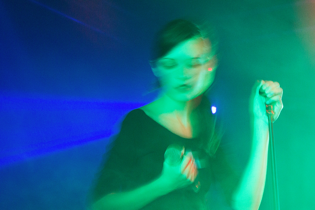 Laslo Antal agierte dezent im Hintergrund an den Reglern, so dass Sängerin Lidija Andonov ganz im Mittelpunkt stand. Wer übrigens hinter dem Namen „Sixth June“ philosophische Bedeutungen vermutet, muss enttäuscht werden. Der Bandname geht auf das Geburtsdatum Laslos zurück. Aber er klingt einfach gut. Die Wurzeln und Inspirationen liegen unüberhörbar in den 80er Jahren: Melancholisch-dunkel, aber eingängig und durchaus tanzbar sind die rein synthetischen Klangwelten von „Sixth June“, so dass sich einige Gäste dem Takt hingaben. Andere genossen die distanzierte Kühle der Klänge ganz in sich gekehrt. Der verdiente Applaus blieb nicht aus, ebenso wie die entsprechende Zugabe.