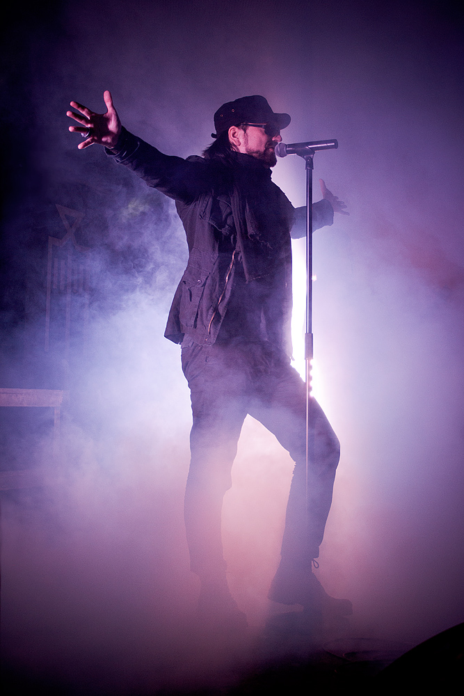 Den absolut würdigen Abschluss bildeten „Merciful Nuns“. Die deutsche Gothic-Rock-Formation ging aus der 2008 aufgelösten Band „Garden Of Delight“, die man getrost als „legendär“ bezeichnen kann, hervor. Aber auch „Merciful Nuns“ konnten sich in den letzten Jahren eine große Anhängerschar erspielen. Was aufgrund des faszinierenden Auftritts wohl niemand mehr wundern dürfte. Unmittelbar nach dem Intro brach ein Klang- und Lichtgewitter los. Die Stimmung im Publikum wurde zunehmend unbändiger. Die große Bühnenpräsenz von Sänger Artaud Seth – flankiert von Bassistin Jawa Seth und Gitarrist Jon Tmoh – riss scheinbar jeden mit. Seine eindringliche Stimme und die überaus dunkle, ja fast „erdrückende“ Atmosphäre waren überwältigend. Auf den Schultern von Anderen balancierende Fans drückten ihre Hingabe und Bewunderung mit ausgestreckten Armen und einem Banner aus (und erinnerten so an Auftritte von „Fields Of The Nephilim“ und „New Model Army“).