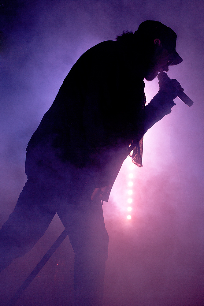 An vorletzter Stelle gingen die Gastgeber „an den Start“. Die 1998 u.a. von den Brüdern Peer (Gesang) und Christian Lebrecht (Bass) gründete Band aus Berlin sind einfach bemerkenswert. Sie bleiben dem eigenen experimentellen Anspruch treu und wissen jedes Mal die Zuhörer aufs Neue in eine musikalische Welt der Melancholie zu entführen. Zentraler Fixpunkt dieser Klänge ist die dunkle, atmosphärische Stimme von Peer Lebrecht. Wie immer mit Zigarette. Wie immer zurückhaltend. Und wie immer begeisternd.