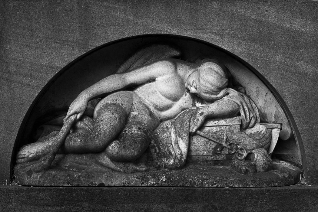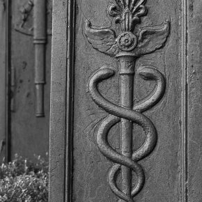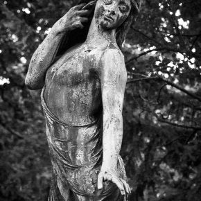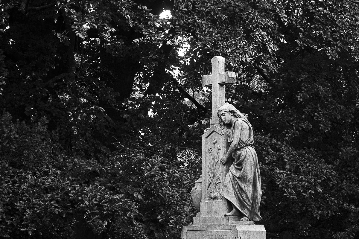 Die Skulpturen und Grabsteine wirken dadurch tatsächlich wie Schmuck in einem Park, der von der Bevölkerung zur Erholung genutzt wird. Rätselhafte Darstellungen ließen mich wiederholt innehalten. Auf einem Stein entdeckte ich eine Schlange, deren langer, zu einem Oval gewundener Körper voller Runen ist. Im Zentrum dieser Darstellung befindet sich ein christliches Kreuz. Diese Verbindung mag ungewöhnlich erscheinen, erklärt sich aber mit dem Wissen, dass die Schriftzeichen der Germanen in einigen Regionen Skandinaviens auch nach der Christianisierung bis ins 19. Jahrhundert Verwendung fanden. Entzifferungsversuche blieben erfolglos. Manche Motive scheinen hingegen der ägyptischen Pharaonenzeit entlehnt. Andere lassen auf Freimaurer schließen. Ein steinerner Hund bewacht die letzte Ruhestätte seines ehemaligen Besitzers. Ein grazil gearbeiteter Reiher zog meinen Blick ebenso an wie eine lasziv wirkende Dame, die sich kokett das Haar zurückstreicht. Das Seltsamste war allerdings eine Skulptur mit zahlreichen Brüsten. Ein Bildnis der Artemis Ephesia, Tochter des Zeus und Keto. Göttin der Jagd, des Waldes und des Mondes. Hüterin der Frauen und Kinder. Der berühmte Tempel von Ephesos – eines der sieben Weltwunder – wurde ihr geweiht. Archäologische und literarische Zeugnisse beschreiben ihren Oberkörper als mit vielen Brüsten bedeckt. Christliche Deutungen stellen sie als Ernährerin aller Lebewesen dar. Die letzten Sonnenstrahlen kämpften sich durch das Grün der Bäume, ehe langsam die Dämmerung einsetzte, ich den Ausgang ansteuerte und wieder einmal feststellen durfte, dass ein Friedhof gleichermaßen Wissensvermittler und Kulturbotschafter ist.