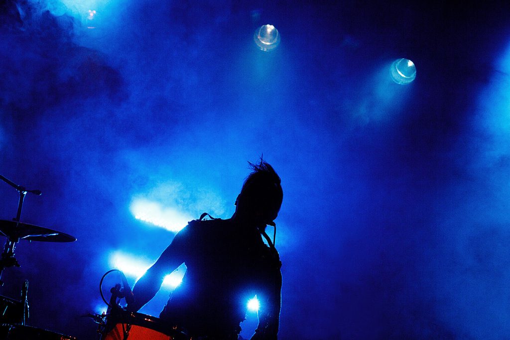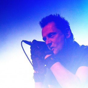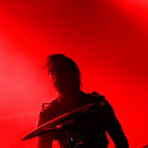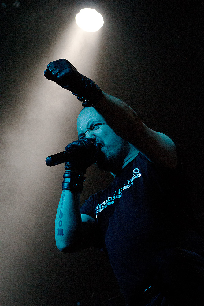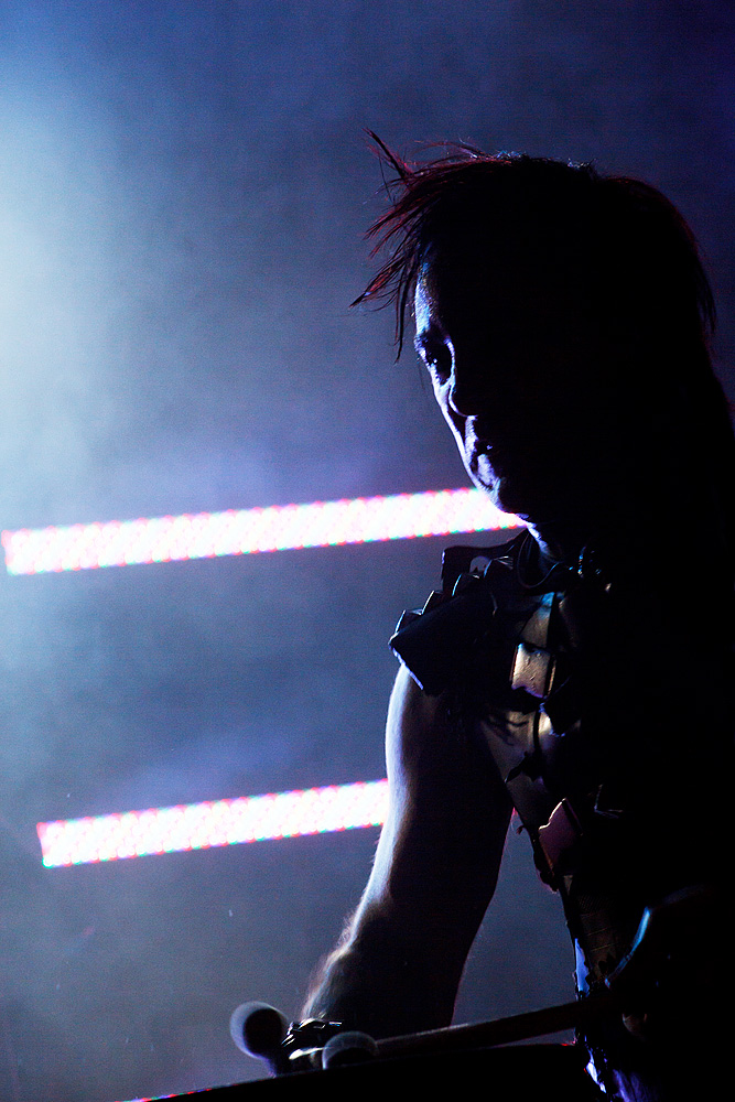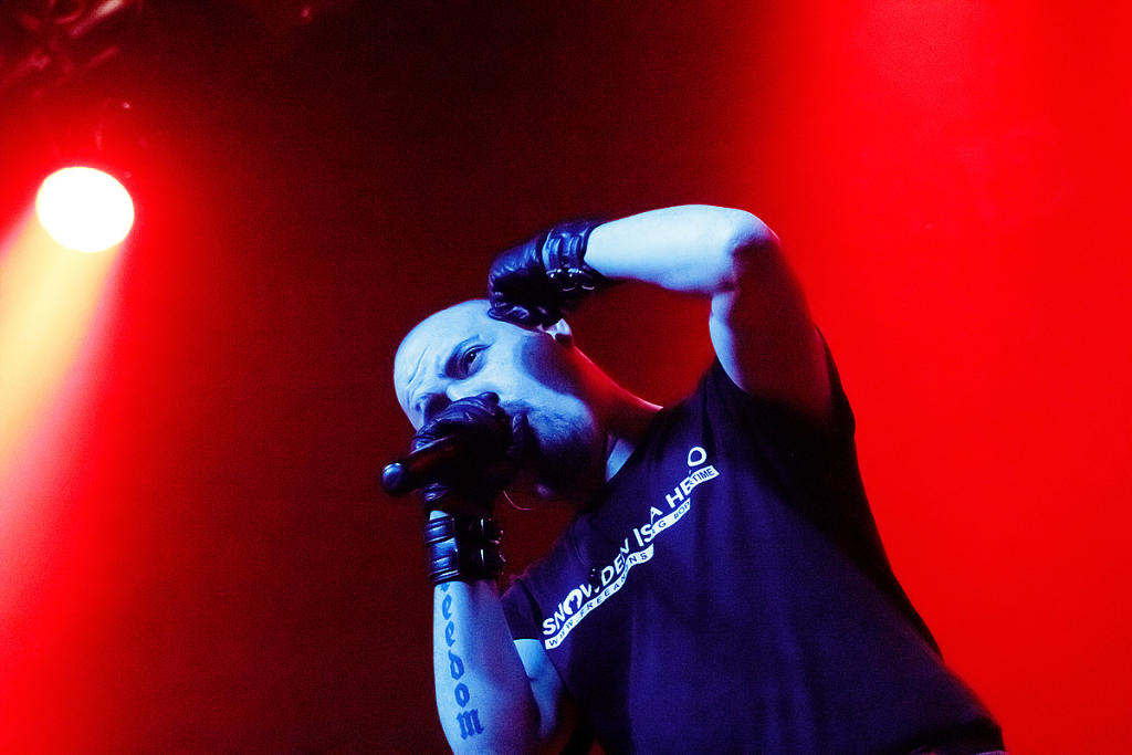 Was folgte, war eine viel zu lange Pause. Als würden „Die Krupps“ nur auf das Schreien, Johlen und Pfeifen warten. Die Anspannung stieg beinahe ins Unermessliche. Doch endlich hatten die „Urgesteine“ – Jürgen Engler, Ralf Dörper und Rüdiger Esch – ein Einsehen. Der Begrüßungs-Applaus brandete den Musikern umgehend entgegen. Hinter dem Schlagzeug nahm übrigens der bereits erwähnte Bradley Bills von „Chant“ Platz – eine durchaus auch körperlich bemerkenswerte Leistung. Am Bühnenrand stand das obligatorische Stahlophon – bestehend aus verschiedenen Stahlrohren, die Jürgen Engler mit aller Wucht u.a. bei Klassikern wie „Metal Machine Music“ und „Wahre Arbeit wahrer Lohn“ bearbeitete. Und auch sonst stand Jürgen Engler im Mittelpunkt des Geschehens – dynamisch, kraftvoll und laut.
