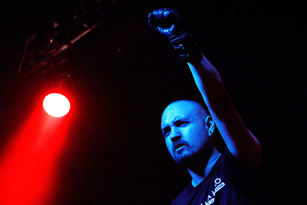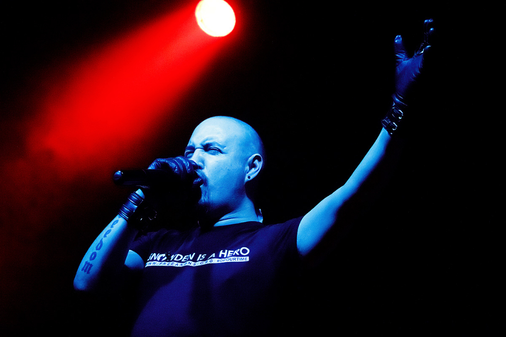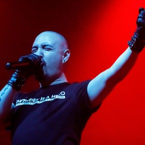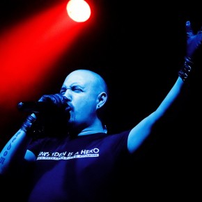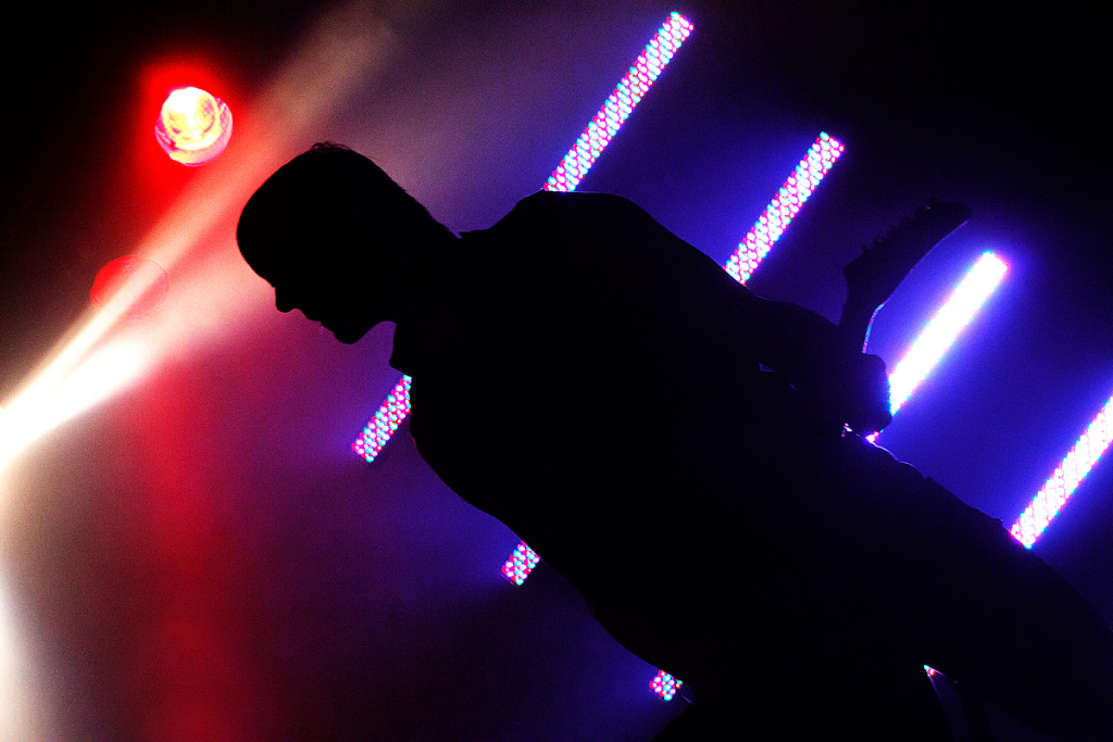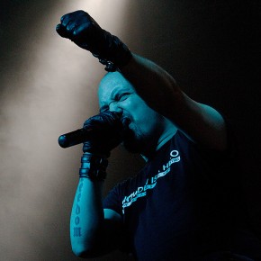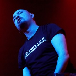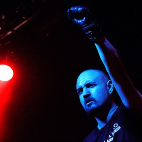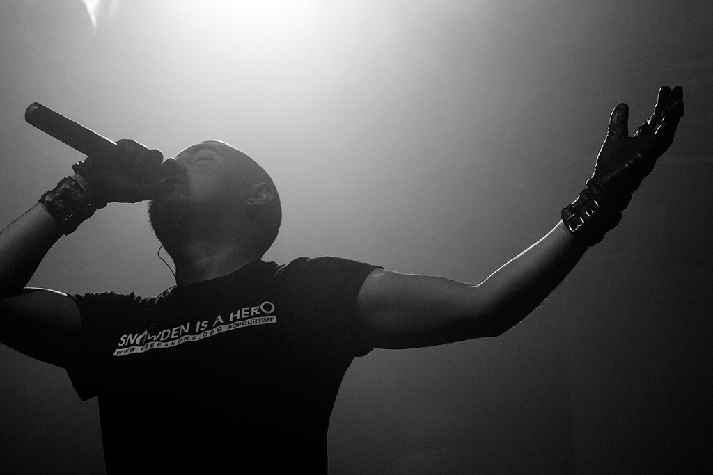 Anschließend traten „Vigilante“ ins Scheinwerferlicht. Sänger und einziges reguläres Bandmitglied Iván Muñoz versteckte sein Gesicht hinter einer Anonymous-Maske. Auf einem provisorischen Papp-Schild waren die Worte „Nothing can stop us“ zu lesen. Der chilenische Musiker, dem live auf der Bühne zwei weitere Musiker zur Seite stehen, präsentierte laut und böse eine Mixtur aus aggressiven, technoiden Elektroklängen und harten Metal-Gitarrenriffs. Seinen Zorn auf die Zustände und Verhältnisse der Gesellschaften dieser Welt brachte er deutlich – sicht- als auch hörbar – zum Ausdruck. Immer wieder sprang er von der Bühne und tauchte im Publikum unter. Die kämpferischen Töne zwangen die Zuhörer zum Nicken und Wippen und vereinzelt zum Springen.