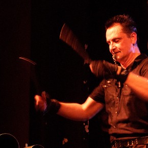 BERLIN, C-CLUBZuerst konnten „Chant“ – ein Mitbringsel von Krupps-Frontmann Jürgen Engler aus Austin/Texas – überzeugen. Die Bühne war gefüllt mit allerlei Schlagwerk. Diverse Trommeln, Becken, Fässer säumten deren Rand. Und anders als es für einen Schlagzeuger üblich ist, saß Bradley Bills nur selten hinter seinen Trommeln. Diese wurden stehend und hüpfend bearbeitet. Unterstützt wurde er von Kristopher Robin, der ebenfalls hin und wieder zu den Stöcken griff und ansonsten das Keyboard ziemlich grob herumschubste. Zeitweise hielt es Bradley Bills nicht einmal auf dem Boden. Die Kletteraktion auf eine große Trommel machte zwar einen äußerst wackeligen Eindruck, ging aber unfallfrei aus. Satte Töne, schnelle Wirbel – zeitweilig flogen die Arme beider Herren und erzeugten ein rhythmisches Feuerwerk. Umwerfend! Elektronische Konserven halfen nach und so sprangen aus den Lautsprechern solch voluminöse Schlagzeug-Klänge, dass ein vager Vergleich mit „Les Tambours du Bronx“ nicht ganz abwegig war – wobei hier natürlich zwanzig Gliedmassen und mehr für einen phantastischen Takt sorgen. Ein Musik-Konzept, das so vollkommen auf Schlagwerkzeuge aufgebaut ist, hat Seltenheitswert. Umso begeisterter wurde es aufgenommen. Insgesamt hatte „Chant“ einen beeindruckenden „Bums“, der auch optisch auf der Bühne unterstrichen wurde. Ein temperamentvoller Auftritt, der mit reichlich Beifall belohnt wurde.