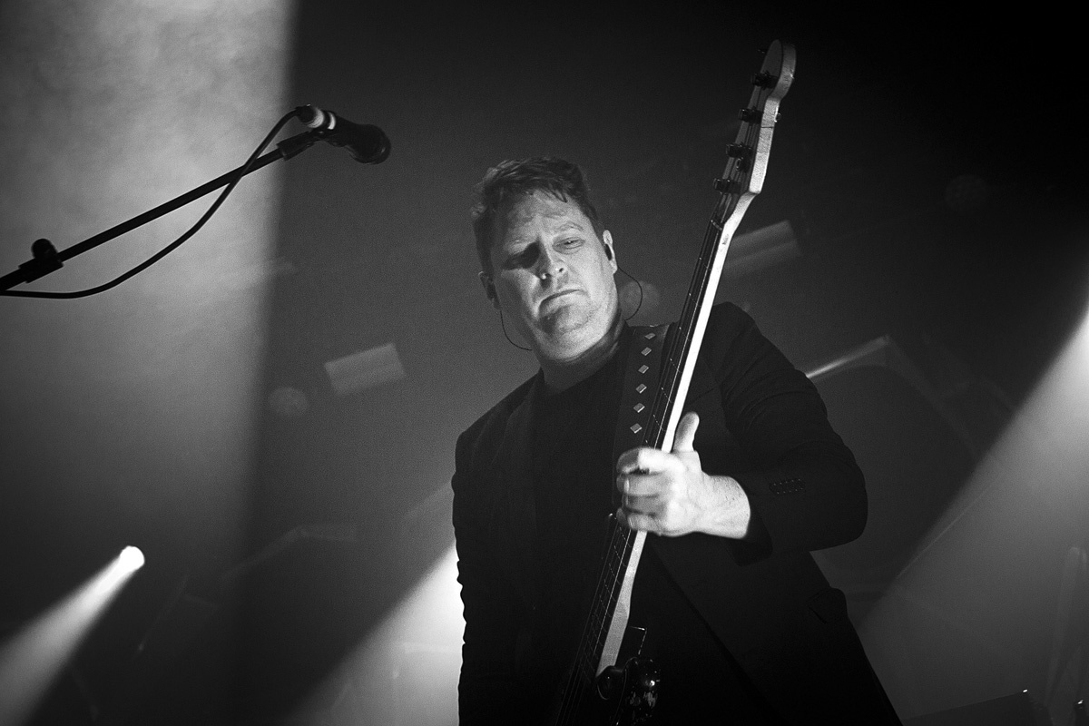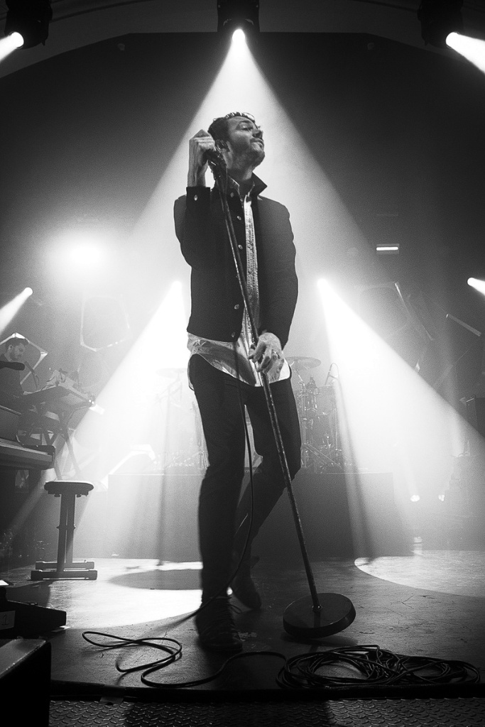 Nach einer Pause, die sich für Manchen unerträglich lange anfühlte, war es endlich soweit: Mit „Hallelujah (So Low)“ startete ein mitreißender Auftritt. Den ihnen vorauseilenden Ruf, eine hervorragende Liveband zu sein, wurden die „Editors“ an jenem Abend absolut gerecht. Die Mischung aus neuen Stücken vom Anfang März erschienenen sechsten Studioalbum „Violence“ und den eingangs erwähnten Klassikern konnte man sich nur schwer entziehen. Nach und nach legten die letzten Besucher ihre Zurückhaltung ab und gaben sich den herrlichen Melodien, der packenden Energie und der wunderbaren Stimme von Tom Smith hin. Die Begeisterungswelle bahnte sich ihren Weg bis in die letzte Reihe. Beeindruckend. Ein vortreffliches Lichtkonzept erschuf einen perfekten optischen Rahmen für den dargebotenen Post-Punk-inspirierten Indie Rock. Wehmütig-sehnsüchtige Passagen und das Einstreuen von ruhigeren Stücken gab Raum, um seinen Gedanken nachzuhängen, Emotionen wirken zu lassen und neue Spannung aufzubauen, ehe man vom Strudel des Gefühlsüberschwangs erneut mitgerissen wurde. Mit dem großartigen, etwa achtminütigen „Papillon“, welches am Klavier/Keyboard eingeleitet wurde und großen Jubel auslöste, mobilisierten die fünf Musiker nochmals die Massen, ehe nach über 100 Minuten und 22 Songs ein schöner Konzertabend mit dem Titel „Marching Orders“ einen visuell wie akustisch würdigen Abschluss inklusive Gänsehautfaktor fand: Als Tom Smith noch einmal am Klavier Platz nahm, im Hintergrund wabernde Lichtstrahlen seine Silhouette herausarbeiteten und sich der Song langsam steigerte, wurden ein letztes Mal viele Hände nach oben gestreckt und die Worte des Refrains lautstark mitgesungen.