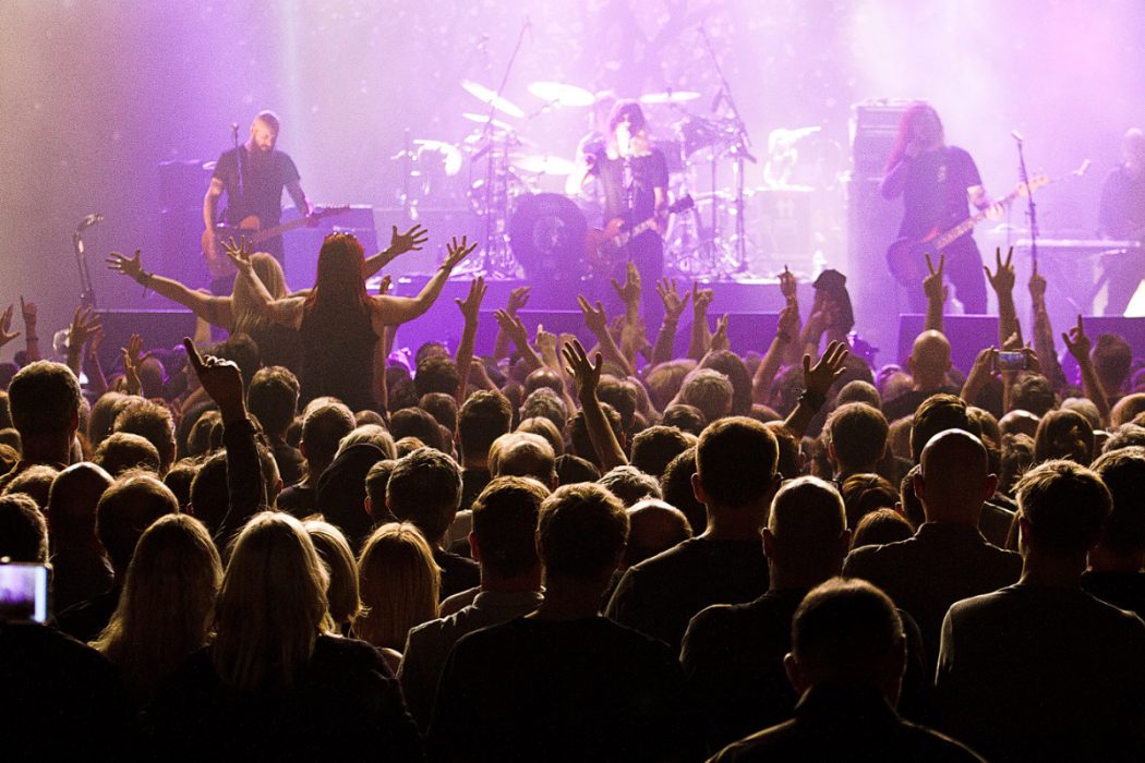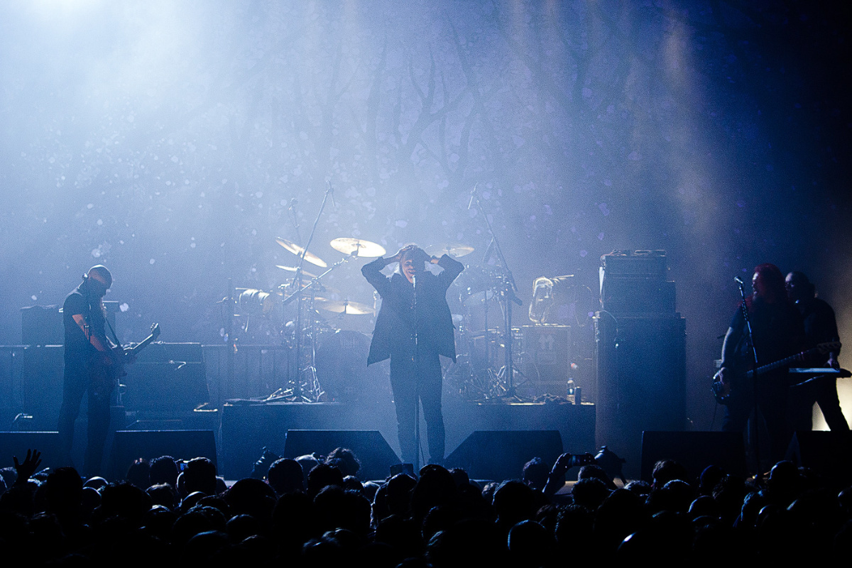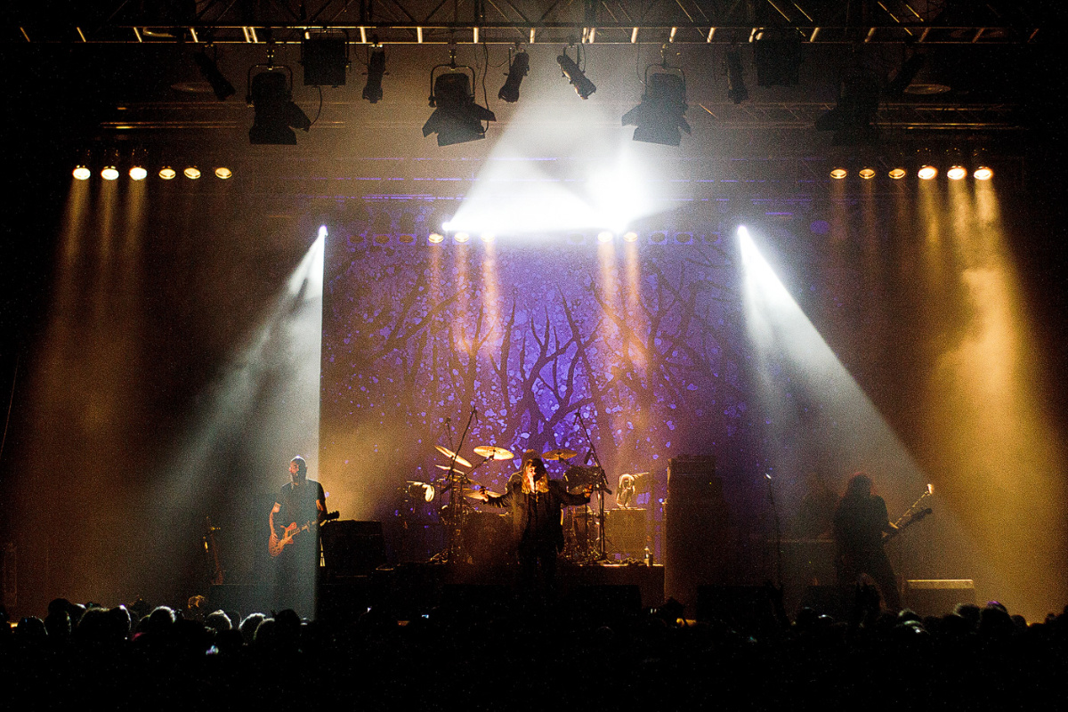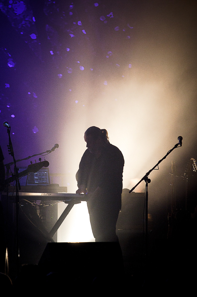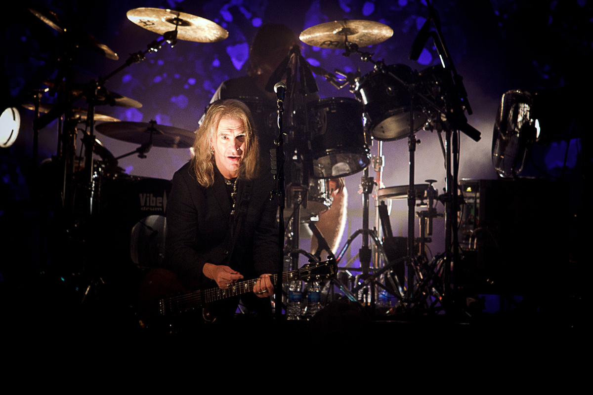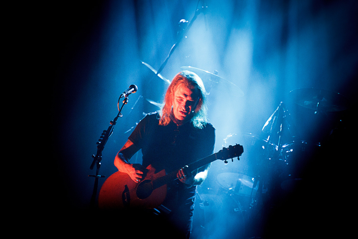Natürlich stand das kürzlich erschienene Album „From Here“ im Mittelpunkt. Die neuen Titel fügten sich sehr gut in die Setlist ein, welche darüber hinaus eine Reise durch die lange Bandgeschichte bedeutete: 15 Titel aus elf Alben. Einzig drei Alben blieben unberücksichtigt. Höhepunkte zu benennen, fällt mehr als schwer. Schließlich können New Model Army aus dem Vollen schöpfen. Das Repertoire aus großartigen Liedern erscheint endlos. Beispielsweise dem direkt auf „51st state“ folgenden Song „Believe it“ aus dem Jahr 1992: Eindringlich, kraftvoll und doch ein Stück weit melancholisch. Spätestens als auf Justin Sullivans Frage „Is this where we’ve come to?” ein mehrstimmiger Chor mit den Worten „I don’t believe it” antwortete, konnte man sich über einen Moment mit Gänsehautfaktor freuen. Gleiches gilt für die Darbietung des brillanten Titels „Here Comes The War“, bei dem zahlreiche Arme in die Höhe gestreckt wurden. Insbesondere im vorderen Bereich der Halle wurde enthusiastisch getanzt und die bekannten Stücke textsicher mitgesungen.