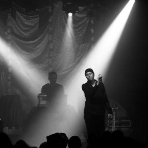 Zwar hätte der Saal noch dem einen oder anderen Besucher Platz geboten, der Stimmung tat dies jedoch weder auf noch vor der Bühne einen Abbruch. Schließlich hatte die Berlinerin Sara Noxx, die den Abend eröffnete, ein Heimspiel. So freute sie sich über einige bekannte Gesichter im Publikum, die ihre Begeisterung deutlich zum Ausdruck brachten. Aber auch die anderen Anwesenden zog die sympathische Sängerin mit ihrer klaren Stimme im Sprechgesang an. Verhaltene Leidenschaft, disziplinierte Körpersprache und doch faszinierend. Elektronisch-kühle Klänge, die an Anne Clark erinnerten. Die Hörerschaft dankte mit angemessenem Beifall.