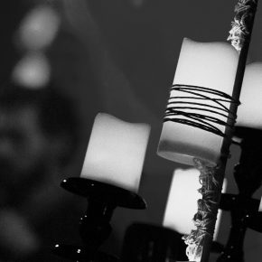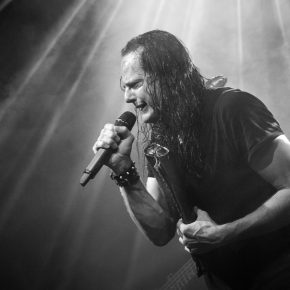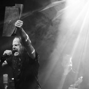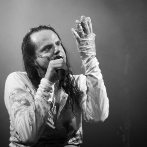 „Goethes Erben“ präsentierten ein Feuerwerk aus alten bekannten Liedern und einigen neueren Titeln aus dem Musiktheaterstück „Menschenstille“. Für ein Duett kam Sara Noxx zurück auf die Bühne: „Sie wusste mehr“ – ein perfektes Zusammenspiel. Und Oswald Henke forderte zum Tanz. Ein Schmunzeln konnten sich die Wenigsten verkneifen. Apropos Schmunzeln: Wenn er und Sonja Iphigenie suchen und Cornelius Sturm (Bass) kurzerhand zum Metzger ernannt wird, huschte ein sarkastisches Grinsen über sein Gesicht. Ob es das fast verschmitzte Parieren des Aufschreis aus dem Publikum, als er seinen Pferdeschwanz löste, oder seine sich mehrmals auf der Flucht befindliche Hose war, die ihn zu Scherzen animierte: An jenem Abend offenbarte er mehrmals seinen Hang zum Humorigen. Diese lockere Stimmung verflog jedoch bei den dargebotenen Stücken, welche er sichtbar „durchlebte“ und neu interpretierte. Echte Emotionen, die zudem visualisiert wurden. Papierblätter dienten als Speise oder wurden zerknüllt und auf den Boden geworfen. Aus einer Truhe bzw. einem Koffer förderte Henke Erinnerungsstücke zutage. Accessoires als Auftakt für das nächste Lied.