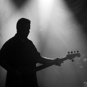 Und ehe man sich versah, war der dritte Zugabenblock erreicht, welcher noch einmal Außergewöhnliches bereithielt. Bassist Cornelius Sturm entlockte seinem Instrument mittels eines Schlagzeugbesens ungewöhnliche Klänge. Doch nicht nur die Musik von „Die Sonne schmilzt“ (aus „Menschenstille“) wirkte in ihrer monotonen Art bedrohlich – ebenso der nun mit einem weißen Hemd bekleidete, in einer Blechkiste sitzende und mit schrecklich bunten Farben herumpanschende Oswald Henke machte einen beunruhigenden Eindruck. Zu unserem Entsetzen mischte er sich gar unters Volk und verteilte Farbklekse. Dieser Kelch ging jedoch erfreulicherweise an uns vorüber.