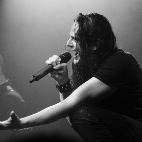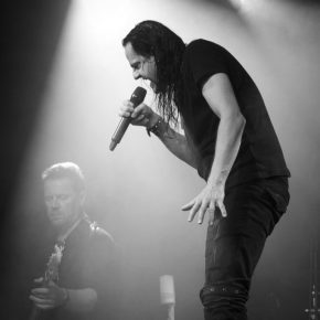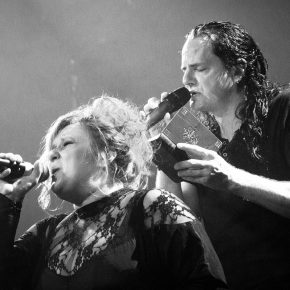 Ein wahrlich ungewöhnlicher Konzertauftakt. Ruhig und zurückhaltend. Doch voller Nachdenklichkeit. Und auch der zweite Titel „Traumsuche“ zeigten „Goethes Erben“ von ihrer stilleren Seite. Sanftes Cellospiel begleitete das Duett von Oswald Henke und Sonja Kraushofer, die auch im weiteren Verlauf des Abends durch ihre Stimmgewalt und ihre theatralische Körpersprache brillierte. Aufregend ihre wie wahnsinnig wirkende Mimik. Eine starke Frau mit einer Ausstrahlung, die den Zuhörer bzw. Zuschauer in den Bann zog und deren Stärke im Zusammenspiel mit Oswald Henke unbedingt nötig ist.
