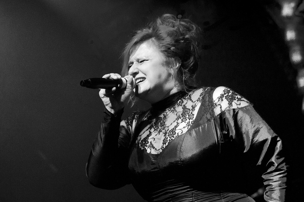 Zwar hätte der Saal noch dem einen oder anderen Besucher Platz geboten, der Stimmung tat dies jedoch weder auf noch vor der Bühne einen Abbruch. Schließlich hatte die Berlinerin Sara Noxx, die den Abend eröffnete, ein Heimspiel. So freute sie sich über einige bekannte Gesichter im Publikum, die ihre Begeisterung deutlich zum Ausdruck brachten. Aber auch die anderen Anwesenden zog die sympathische Sängerin mit ihrer klaren Stimme im Sprechgesang an. Verhaltene Leidenschaft, disziplinierte Körpersprache und doch faszinierend. Elektronisch-kühle Klänge, die an Anne Clark erinnerten. Die Hörerschaft dankte mit angemessenem Beifall.