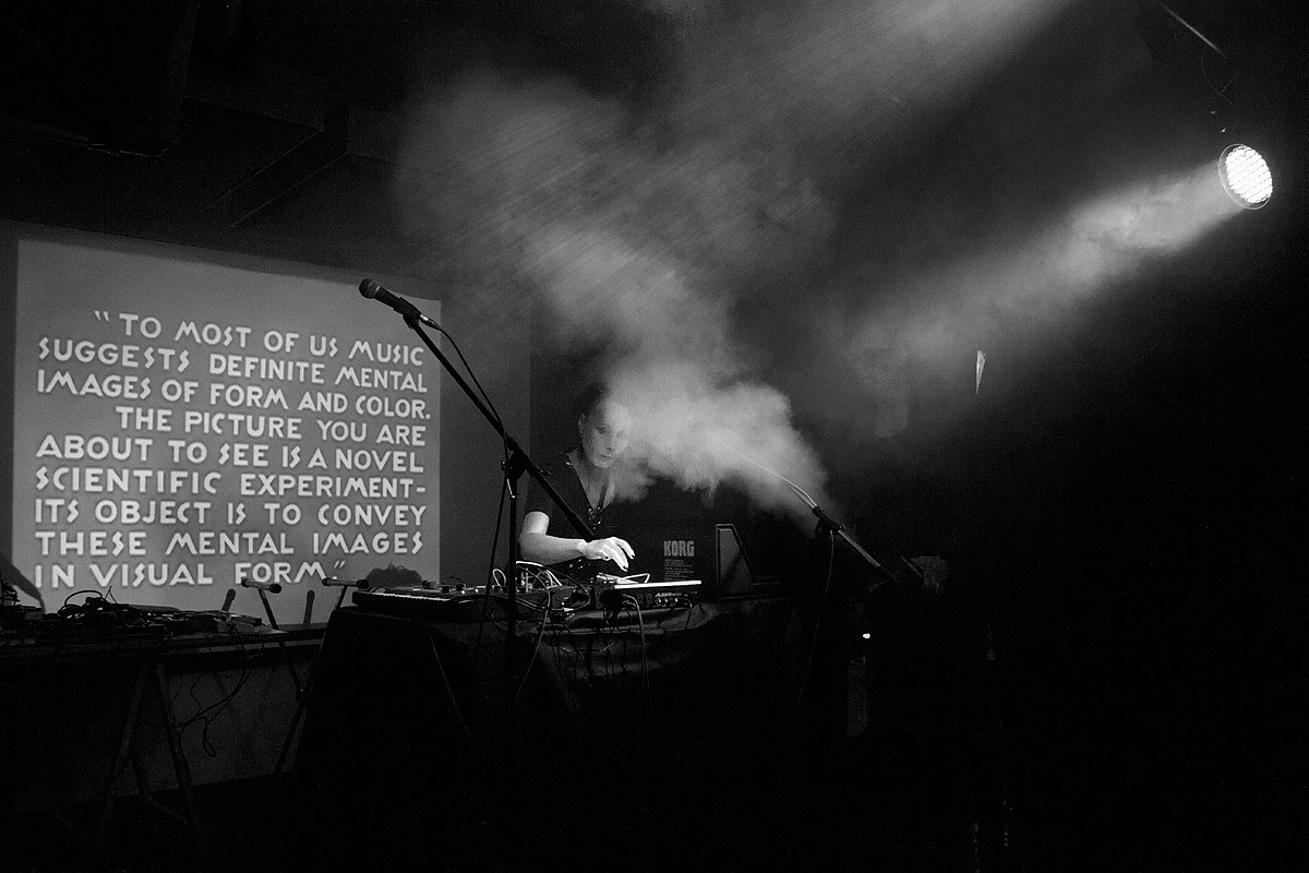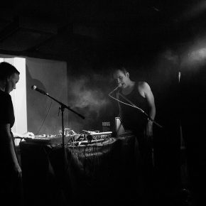 Die spärlich beleuchtete Bühne offenbarte sofort den alternativen Charme des Clubs bzw. der Veranstaltung. Lautsprecher wurden zum Teil von Bierkästen gestützt. Holzböcke mit Leimplatten trugen eine Vielzahl kleiner und mittlerer Gerätschaften mit Drehknöpfen und Steckern. Darüber „lagerte“ ein unüberschaubares Knäuel dünner Kabel. Auf dem Boden liegend wartete eine Gitarre auf ihren Einsatz. Ein verwirrender Eindruck.