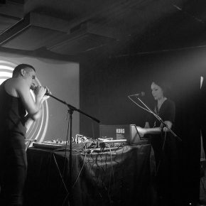 Zum Abschluss des Konzertabends folgte der Hauptgrund, das „Acud macht neu“ an jenem Abend zu besuchen: Dolina. Mit einer aufregenden Stimme zog uns Dolina sofort in ihren Bann. Obwohl auch hier viel Energie in das Drehen von Knöpfchen und das Drücken von Tasten einging und die stimmliche Präsenz nicht voll ausgelebt werden konnte. Normalerweise Kopf eines Trios, für jenen Auftritt aber nur zu zweit angereist, hatte die namensgebende Frontfrau alle Hände voll zu tun. Ein kleines elektronisches Schlaginstrument, welches leicht hallend reagierte und die phantasievollen Kompositionen waren eindrucksvoll und gingen unter die Haut. Kühle, melancholische Balladen, an die 80er Jahre anklingend, drangen wabernd in Ohre und Beine. Der gut gefüllte Raum zeigte sich begeistert.