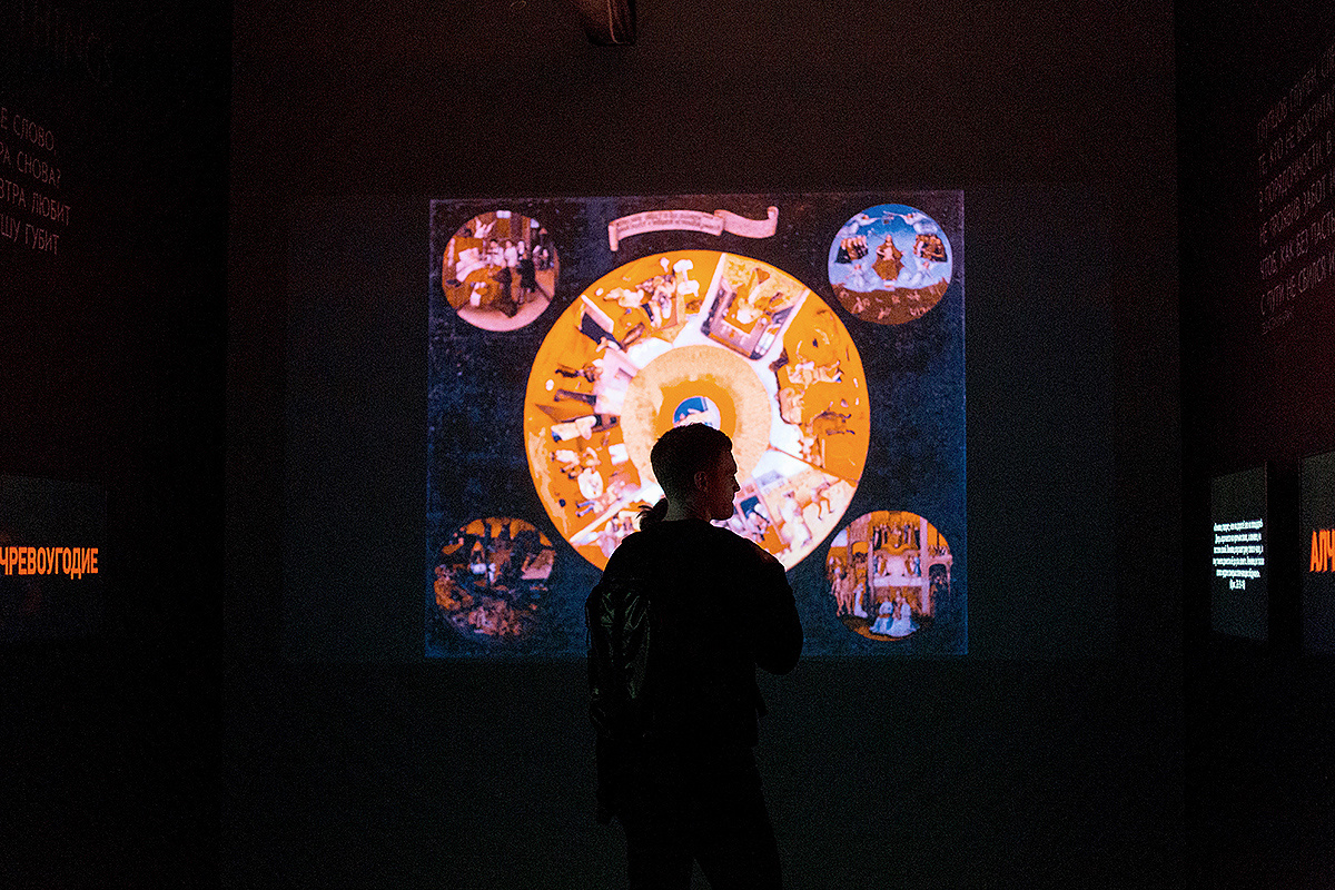 In den Räumen der Ausstellung ‚Hieronymus Bosch. Visions Alive‘ bemühten sich die Organisatoren, sämtliche vorhandenen Informationen über das Leben und die Kunststücke von Bosch zu sammeln, einschließlich der phantastischsten Versionen. Der Multimedia-Teil ist ein echter Karneval der furchtbaren und gleichzeitig attraktiven Gestalten des Malers. Man kann endlos diese Schattenspielwelt mit dem schleimigen Geschmeiß, den dickbäuchigen Ungeheuern, Fischen mit menschlichen Beinen, Leuten mit Fässern statt der Bäuche, spinnenförmigen Wesen betrachten. Nach der Anmerkung von dem Kunsthistoriker Lew Ljubimow: ‚Der Ekel paart sich dort mit dem Ekel und in dieser ekelhaften Kombination wird er auf einmal unheimlich attraktiv. Dieser Ekel, diese Ausgeburt der stinkenden Moraste, der dunklen faulen Innereien scheinen einfach lustig, sogar gemütlich – solche offenherzige innere Freude in den Werken des Künstlers und so erstaunlich ist die Malerei selbst!‘
