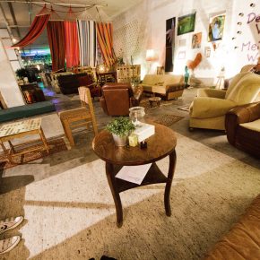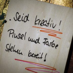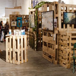 Mit einem abwechslungsreichen Angebot – Fotografie, Malerei, Kunsthandwerk, Holzschnitzereien, Installationen, Tanz und und und – haben es die Veranstalter geschafft, unterschiedlichste Menschen anzusprechen, die neugierig die beiden Hallen durchstreiften. Oder sich im urgemütlichen „Gesellschaftsraum“ in eines der alten Sofas oder einen Sessel niederließen. Ebenso fand die sich daneben befindliche „Palettenlounge“ Gefallen. Einwegpaletten zogen sich wie ein roter Faden durch die Gestaltung und waren in vielfältiger Verwendung überall anzutreffen: als Sitzgelegenheit, Tisch, Absperrung, oder auch als „Wand“ für die Kunstobjekte.