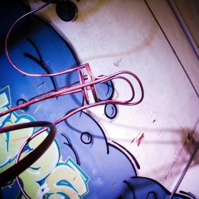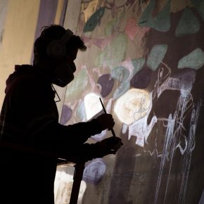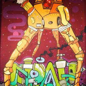 Der Geruch von Farbe durchdrang die Luft der Halle 2. In einer Performance wurde ein Pkw farbenfroh besprüht. Im Laufe der Veranstaltung entstanden meterhohe Graffitis. Auch für die kreativen Selbstversuche der kleinen Besucher war alles vorhanden: Flächen, Pinsel und Farbe.