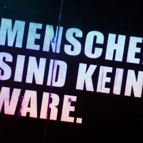 Auch für Gesellschaftskritik war Platz. So wies „Fair shoot“ mit kurzen Darbietungen auf das Thema Menschenhandel und Zwangsprostitution hin. Besonders eindrucksvoll war hierbei die Verbindung der Projektion eines Kunstwerks von Paolo Troilo, Musik von Casper feat. Blixa Bargeld, Dagobert & Sizarr („Lang lebe der Tod“) und der Aufführung der Darstellerinnen. Die präsentierten Daten und Fakten waren und sind erschütternd.