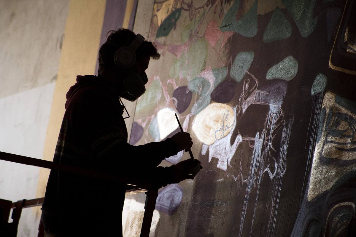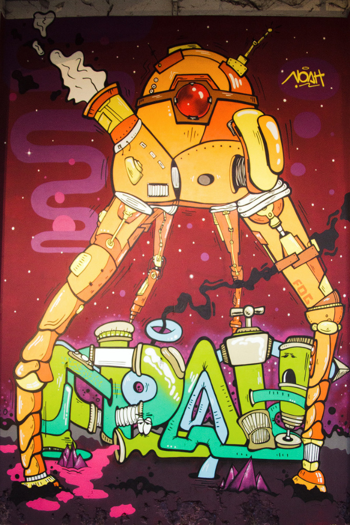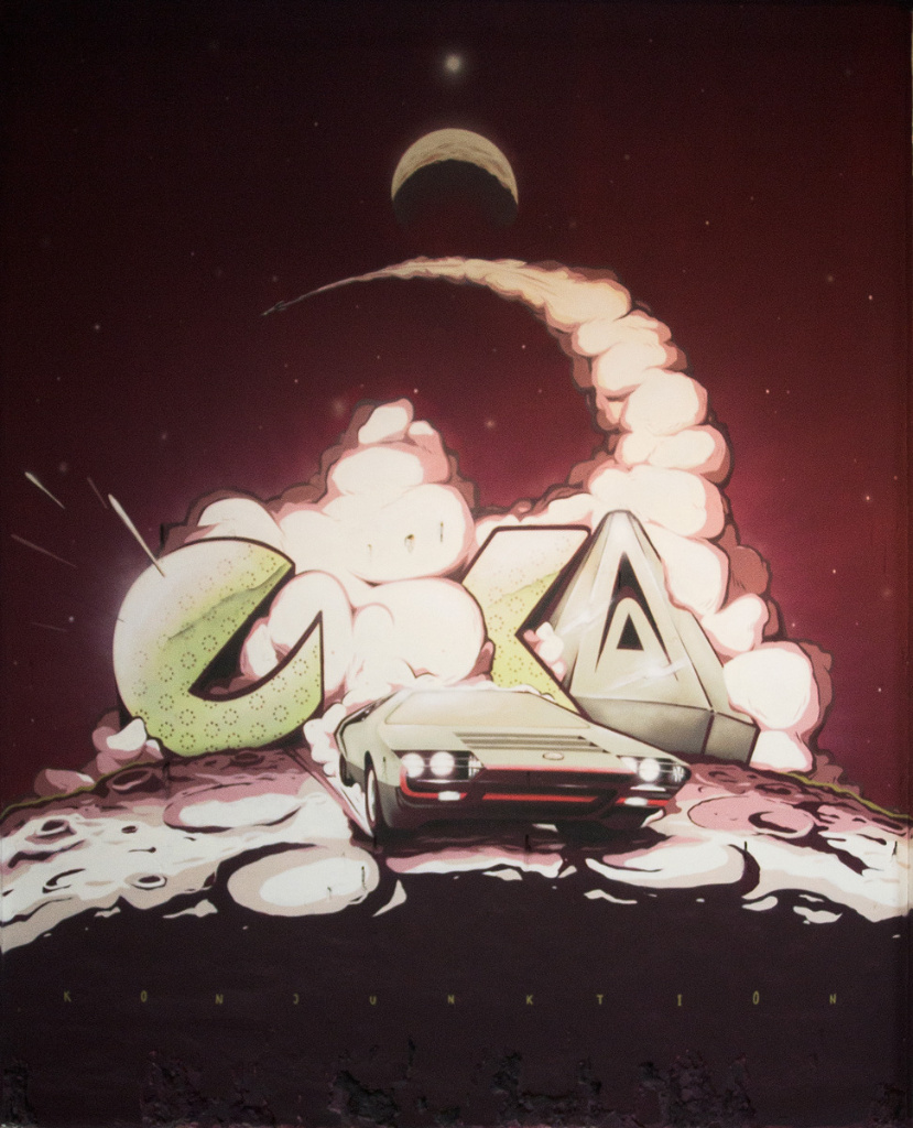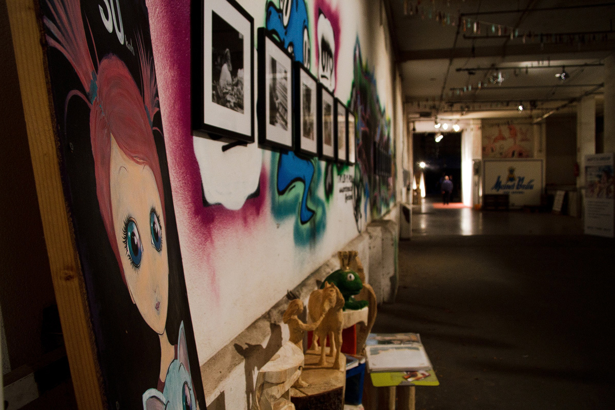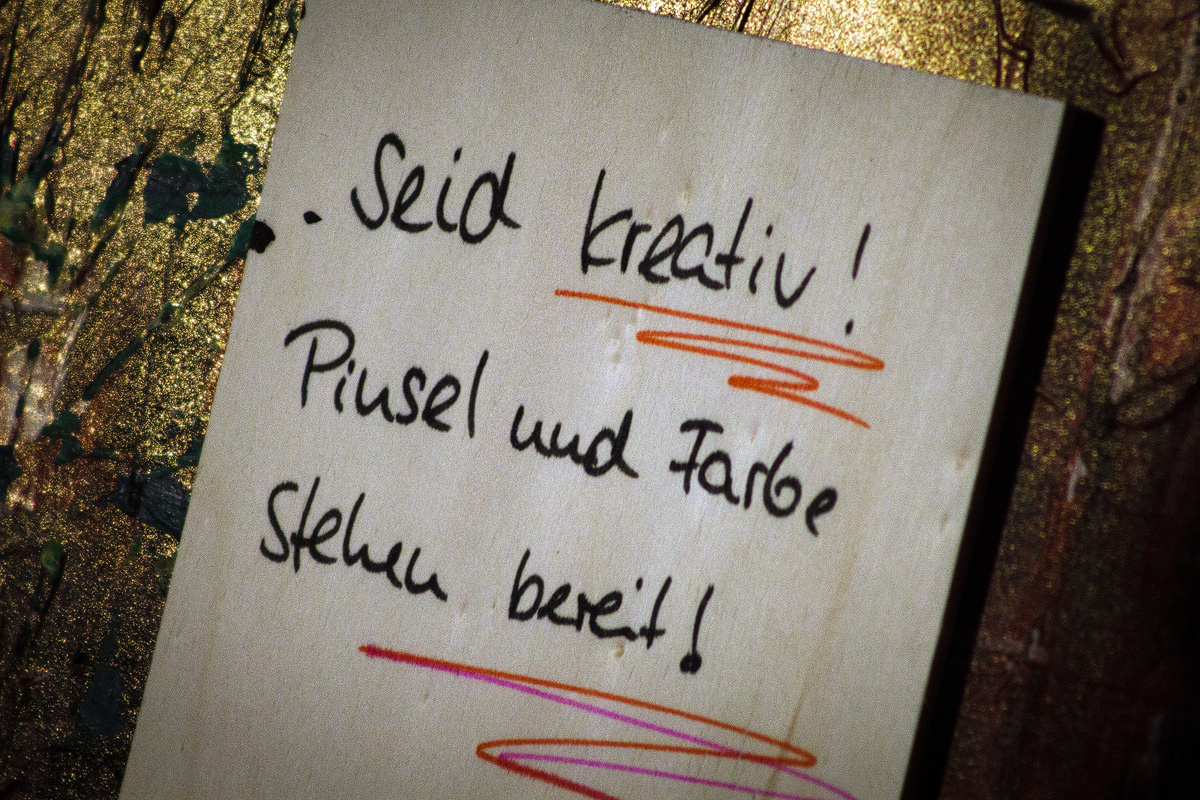 Der Geruch von Farbe durchdrang die Luft der Halle 2. In einer Performance wurde ein Pkw farbenfroh besprüht. Im Laufe der Veranstaltung entstanden meterhohe Graffitis. Auch für die kreativen Selbstversuche der kleinen Besucher war alles vorhanden: Flächen, Pinsel und Farbe.