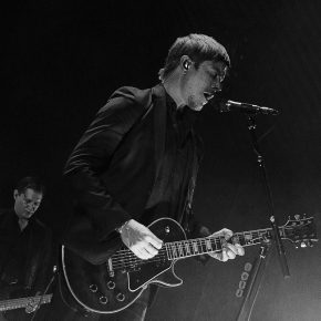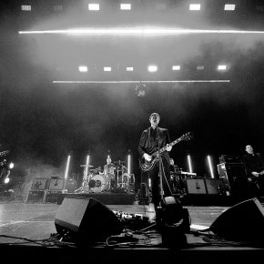 Während der obligatorischen Umbaupause füllt sich die Halle zunehmend. Die Veranstaltung ist erwartungsgemäß ausverkauft. An diesem Abend findet eines von nur zwei Konzerten in Deutschland statt. 4000 Besucher sind in gespannter Erwartungshaltung, ehe die Musiker von Interpol schließlich die Bühne betreten. Überschwängliche Reaktionen lassen nicht lange auf sich warten. In den Texten über Sucht, innere Leere und Selbstmord liegt zuweilen viel Schwermut. Davon ist an jenem Abend jedoch wenig zu spüren. Es wird gejohlt und gesprungen. Arme in die Luft gestreckt. Der Funke der Ausgelassenheit springt bis auf die Ränge über. So manch Besucher erhebt sich von seinem Sitz, um beschwingt zu tanzen. Doch zwischen all den überschwänglichen Menschen, die Interpol feiern, sieht man ebenso einige enttäuschte Gesichter. Besucher, die darauf eingestellt waren, von tiefer Melancholie umhüllt zu werden und sich dieser bindungslos hingeben zu können. Doch die wehmutsvollen, ruhigeren Zwischentöne bleiben zumeist aus. War dies in der Vergangenheit nicht eine Stärke von Interpol? Schaut man sich im Rund des Tempodrom um, hat die Band aber alles richtig gemacht. Die Stimmung ist prächtig. Die Massen lassen sich von dem rockigen, nach vorne gerichteten Auftritt mitreißen. Das Konzert erinnert fast schon ein wenig an große Stadionrockveranstaltungen. Wer dies mag (und das scheinen nicht wenige zu sein), dürfte vlle Zufriedenheit verspüren. Tiefergehende Emotionalität, Schwermut, bedeutungsvolle Gefühle kommen jedoch kaum auf. Es werden keine melancholischen Bilder auf die innere Leinwand projiziert. Schade. Zumindest einzelne Songs hätte man in einem zurückhaltenderen Gewand präsentieren können. Der allgemeinen Stimmungslage hätte dies sicher nicht geschadet. Die Lightshow ist entsprechend. Über den Köpfen der mitunter in blaues Licht gehüllten Musiker schwebt eine Diskokugel, die helle Strahlen in alle Richtungen schickt. Leuchtstäbe und Strahler im Hintergrund produzieren Gegenlicht. Die Emotionalität und Intension der Stücke voller Weltschmerz und Einsamkeit scheint im Gitarrenspiel und Stroboskopgewitter unterzugehen. Aber ich entdecke auch einige Menschen, die mit geschlossenen Augen und in sich versunken tanzen. Vielleicht entsteht an diesem Abend bei vielen die interpolsche Melancholie allein im Geiste…