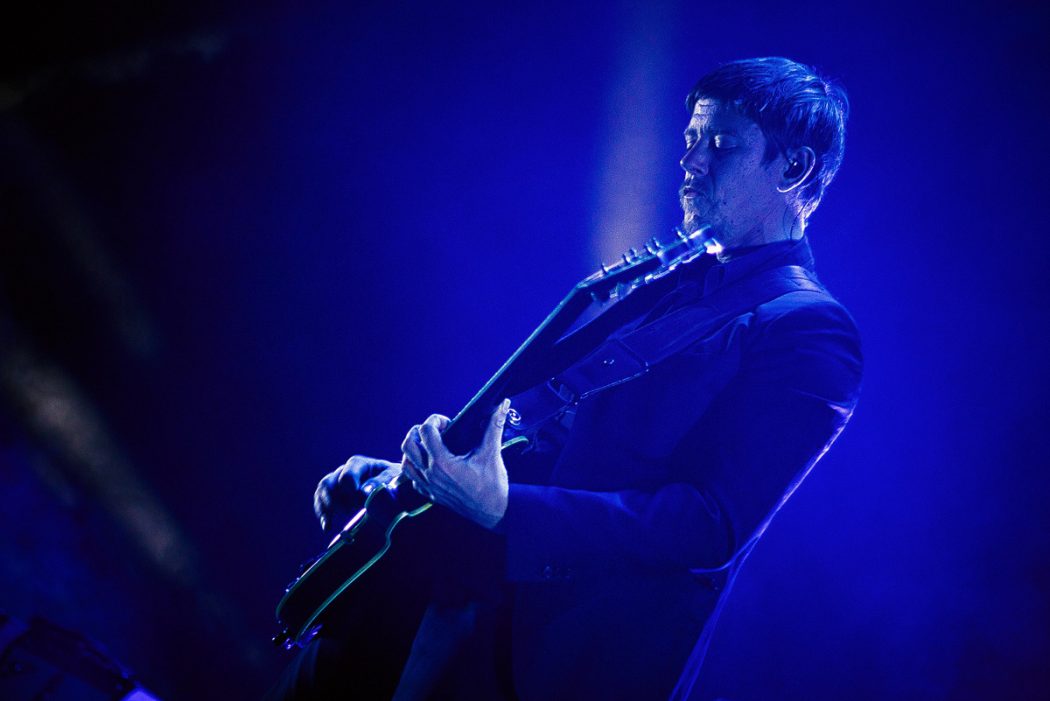 Während der obligatorischen Umbaupause füllt sich die Halle zunehmend. Die Veranstaltung ist erwartungsgemäß ausverkauft. An diesem Abend findet eines von nur zwei Konzerten in Deutschland statt. 4000 Besucher sind in gespannter Erwartungshaltung, ehe die Musiker von Interpol schließlich die Bühne betreten. Überschwängliche Reaktionen lassen nicht lange auf sich warten. In den Texten über Sucht, innere Leere und Selbstmord liegt zuweilen viel Schwermut. Davon ist an jenem Abend jedoch wenig zu spüren. Es wird gejohlt und gesprungen. Arme in die Luft gestreckt. Der Funke der Ausgelassenheit springt bis auf die Ränge über. So manch Besucher erhebt sich von seinem Sitz, um beschwingt zu tanzen. Doch zwischen all den überschwänglichen Menschen, die Interpol feiern, sieht man ebenso einige enttäuschte Gesichter. Besucher, die darauf eingestellt waren, von tiefer Melancholie umhüllt zu werden und sich dieser bindungslos hingeben zu können. Doch die wehmutsvollen, ruhigeren Zwischentöne bleiben zumeist aus. War dies in der Vergangenheit nicht eine Stärke von Interpol? Schaut man sich im Rund des Tempodrom um, hat die Band aber alles richtig gemacht. Die Stimmung ist prächtig. Die Massen lassen sich von dem rockigen, nach vorne gerichteten Auftritt mitreißen. Das Konzert erinnert fast schon ein wenig an große Stadionrockveranstaltungen. Wer dies mag (und das scheinen nicht wenige zu sein), dürfte vlle Zufriedenheit verspüren. Tiefergehende Emotionalität, Schwermut, bedeutungsvolle Gefühle kommen jedoch kaum auf. Es werden keine melancholischen Bilder auf die innere Leinwand projiziert. Schade. Zumindest einzelne Songs hätte man in einem zurückhaltenderen Gewand präsentieren können. Der allgemeinen Stimmungslage hätte dies sicher nicht geschadet. Die Lightshow ist entsprechend. Über den Köpfen der mitunter in blaues Licht gehüllten Musiker schwebt eine Diskokugel, die helle Strahlen in alle Richtungen schickt. Leuchtstäbe und Strahler im Hintergrund produzieren Gegenlicht. Die Emotionalität und Intension der Stücke voller Weltschmerz und Einsamkeit scheint im Gitarrenspiel und Stroboskopgewitter unterzugehen. Aber ich entdecke auch einige Menschen, die mit geschlossenen Augen und in sich versunken tanzen. Vielleicht entsteht an diesem Abend bei vielen die interpolsche Melancholie allein im Geiste…