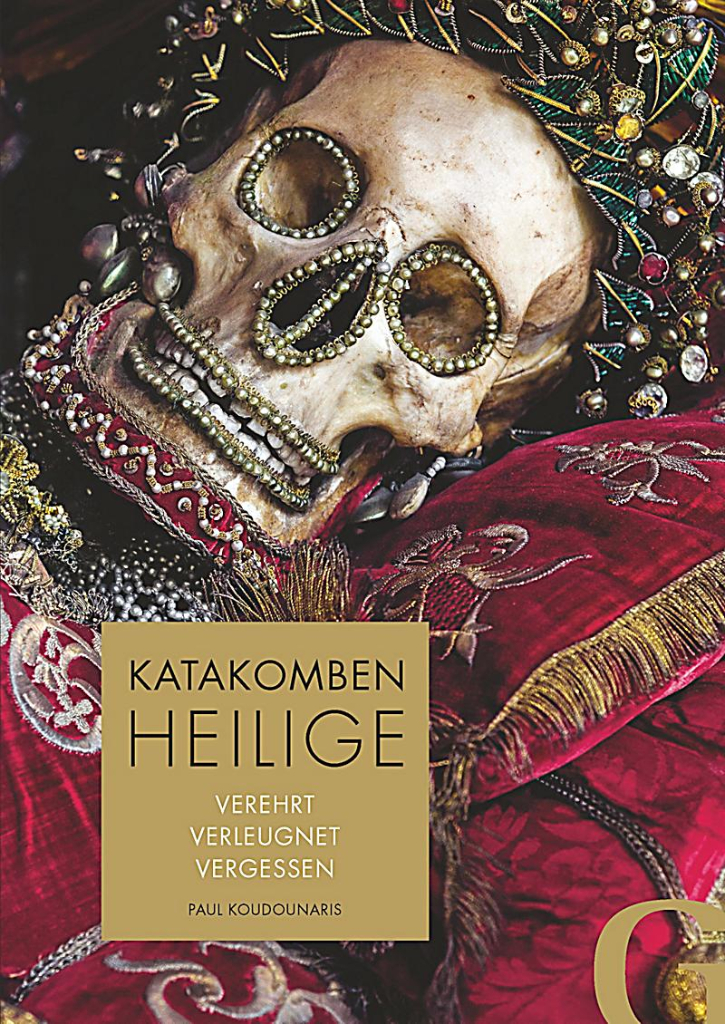 Der Text auf dem Schutzumschlag verrät: „1578 entdeckte man in Rom ein Labyrinth unterirdischer Begräbnisgänge, in denen sich die sterblichen Überreste Tausender Menschen mutmaßlich frühchristliche Märtyrer fanden. In der Folge barg man die Überreste dieser sogenannten Katakombenheiligen und brachte sie in katholische Kirchen und Klöster überwiegend in Süddeutschland, in der Schweiz und in Österreich, wo nach den Zerstörungen des 30-jährigen Krieges und im Zuge der Reformation dringender Bedarf an ‚neuen‘ Reliquien bestand. Dort wurden sie von geschickten Kunsthandwerkern und Künstlern wieder zusammengesetzt, mit Gold und Edelsteinen verziert und in prächtige Gewänder gekleidet. Anschließend stellte man sie in kunstvollen Schreinen aus, um der Gemeinde die spirituellen Schätze, die die Gläubigen im Jenseits erwarteten, stets vor Augen zu halten. Annähernd drei Jahrhunderte lang verehrte man die reich geschmückten ‚Heiligen Leiber‘ als Wundertäter und Beschützer der Gemeinde, bis die Zweifel hinsichtlich ihrer Authentizität schließlich die Oberhand gewannen. Dann schämte man sich ihrer und versteckte oder zerstörte sie. Der Autor und Fotograf Paul Koudounaris wirft mit diesem Buch ein strahlendes Schlaglicht auf die in Vergessenheit geraten Katakombenheiligen.“