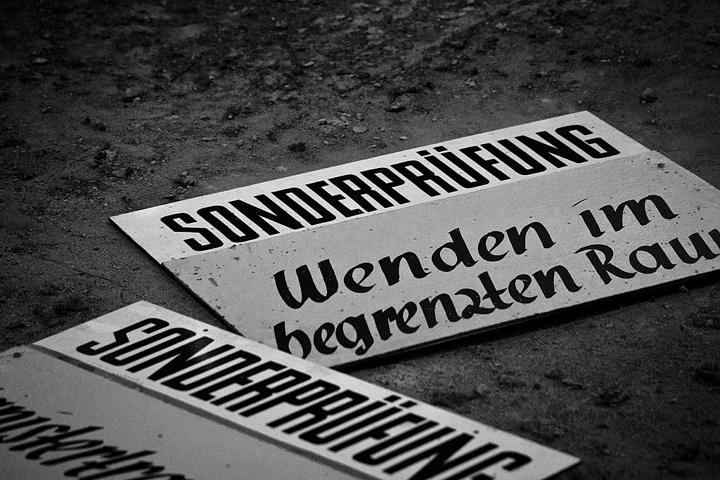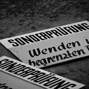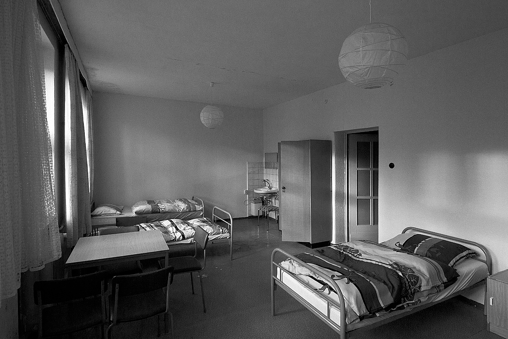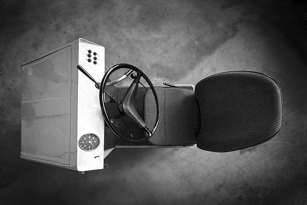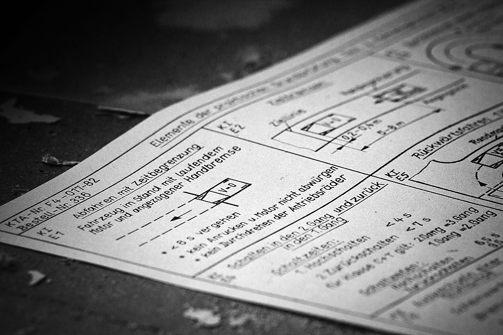 Hinter einem Gittertor, dessen verwirrende Beschilderung auf einen Schießplatz hinweist, erwartet uns ein langgestreckter Flachbau. Ein Gang führt an unterschiedlichen Zimmern vorbei. Nach dem Öffnen der ersten Tür: Erstaunen. Mehrere Stühle reihen sich um einen Tisch, an der Wand hängt ein Waschbecken, Schränke, vier scheinbar frisch überzogene Betten verteilen sich im Raum. Hier schliefen wohl die Schüler während ihrer Ausbildung zum Fahrlehrer. Es fehlen eigentlich nur die persönlichen Gegenstände, um auf eine gegenwärtige Nutzung zu schließen. Andere Zimmer stehen voll mit unterschiedlichstem Gerümpel: Möbel, Hausrat, Waschmaschine, Kühlschrank. Ein wüstes Durcheinander. Doch hinter der nächsten Tür erwartet uns eine Überraschung. Der ehemalige Schulungsraum beherbergt zwei Fahrsimulatoren, die den Spieltrieb wecken. Lenkrad, Schaltung, Pedale und sogar eine Handbremse sind vorhanden. Halbe Autos ohne Räder. Allerdings ohne Ästhetik. Was uns nicht davon abhält, Platz zu nehmen. Dieser erweist sich zwar als nicht wirklich bequem und die Elektronik ist gekappt, aber das Lenkrad lässt sich drehen, die Pedale drücken und die Hebel ruckeln. Brmmm, brmmm, brmmm. Ehe uns jemand bei unserem kindlichen Handeln überrascht, verlassen wir die Simulatoren und widmen uns den restlichen im Raum verteilten Utensilien. Überall liegen Blätter herum. Kleine Zeichnungen, beschriftet, mit detaillierten Vorschriften, Anweisungen und Regeln zum korrekten Lenken, Schalten, Bremsen. So wurden hier von 1962 bis vermutlich 1990 je Lehrgang bis zu 90 Teilnehmer im Namen der GST (Gesellschaft für Sport und Technik) geschult. Ziel war u. a. die „Grundqualifizierung von Ausbildern für die vormilitärische Laufbahnausbildung Militärkraftfahrer“.