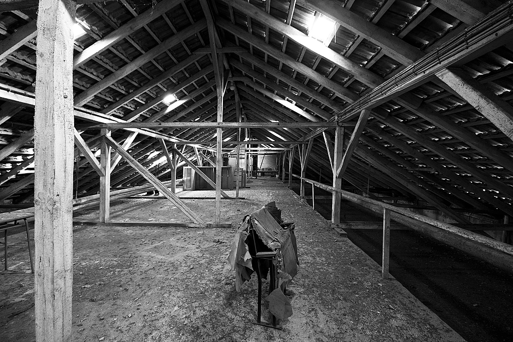 Auf dem Dachboden stehen mehrere Reihen Ersatzklappstühle, deren Verpackungen die Zeit jedoch mehr schlecht als recht überdauern konnten und nun verschlissen und in Fetzen um die Stühle hängen. In einigen kleinen Räumen, sogar mit verschließbaren Türen, finden wir stapelweise Zeitschriften und Schilder, die unter anderem auf Sonderprüfungen wie „Wenden im begrenzten Raum“ hinweisen.
