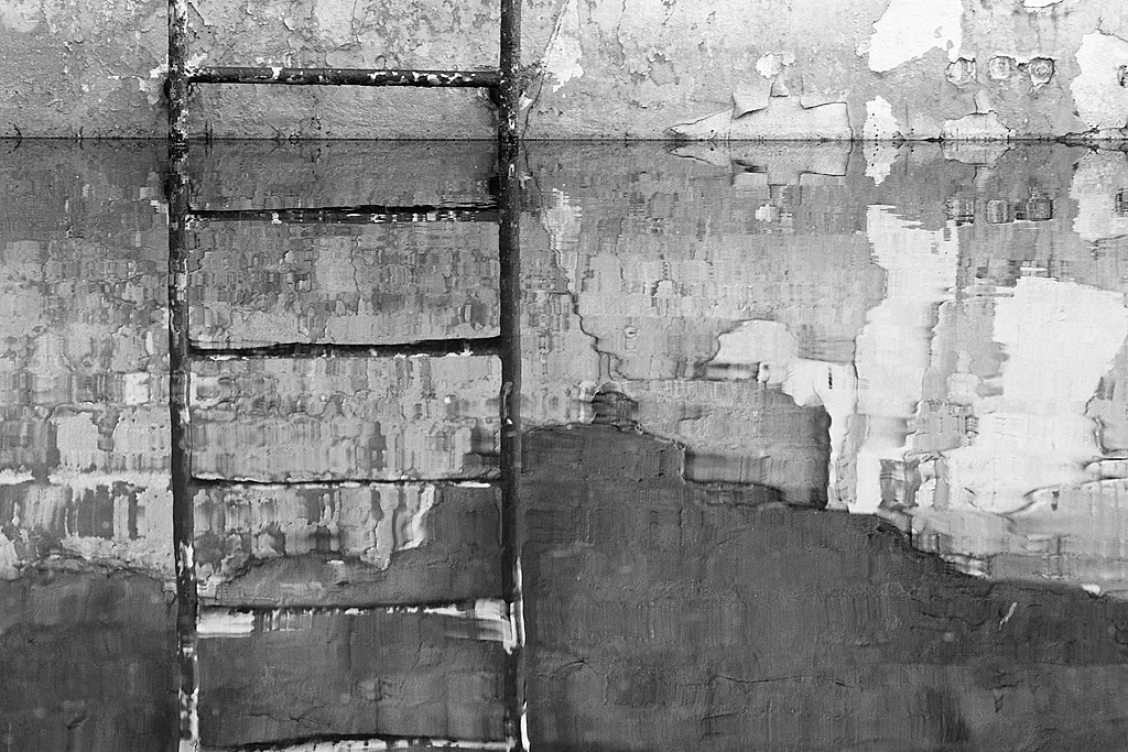 Zum Abschluss schlendern wir noch zu einem wohl seit längerem ungenutzten Schwimmbecken im Außenbereich. Abblätternde blaue Farbe zeichnet Muster an die Wände und die mit Rost und Farbresten übersäte Leiter spiegelt sich im niedrigen Wasser. Zum Greifen nah eine bizarr geformte Felsformation inmitten der hügeligen Landschaft. Bevor wir den Heimweg antreten, blicken wir ein letztes Mal zurück. Einige Räume des ansonsten leerstehenden Baus sind vermietet, wodurch das Gebäude nicht ganz verwaist ist und sich noch kein größerer Verfall zeigt. Doch so idyllisch die Gegend auch ist, die Zukunft der ehemaligen Schule für Kfz-Ausbildung der GST ist ungewiss…