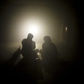 Ein Höhepunkt der Ausstellung ist die faszinierende Installation „Hydrosfeer“. Atmosphärisches Rauschen, Donnern, aufflackerndes Licht und abrupte Dunkelheit erschaffen die Simulation eines herannahenden Unwetters, das die Sinne fesselt. Im mehrstöckigen Innenbereich des leerstehenden Industriekomplexes senkt und hebt sich ein riesiges, dünnes Tuch, während Besucherinnen und Besucher Yogamatten ausbreiten, um sich unter die „Gewitterwolken“ zu legen und in die Illusion einzutauchen. Die Installation stellt die drei Stadien eines Gewitters nach: Wachstum, Reife und Zerfall.