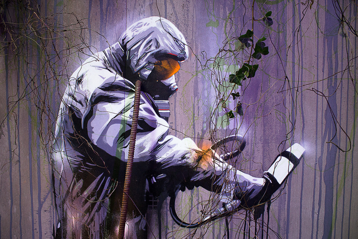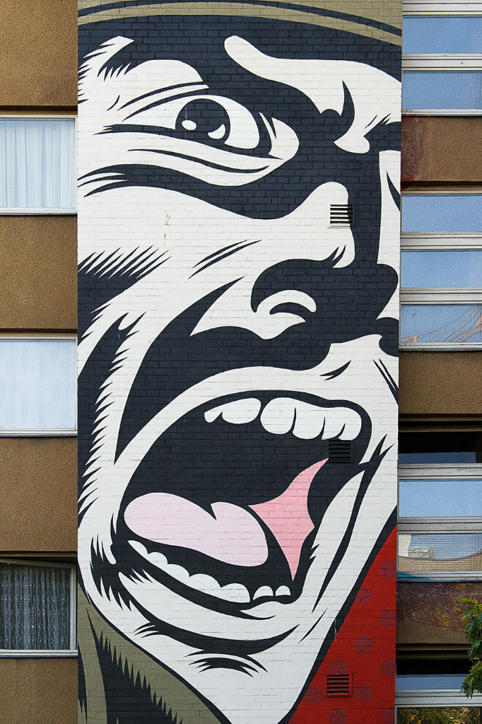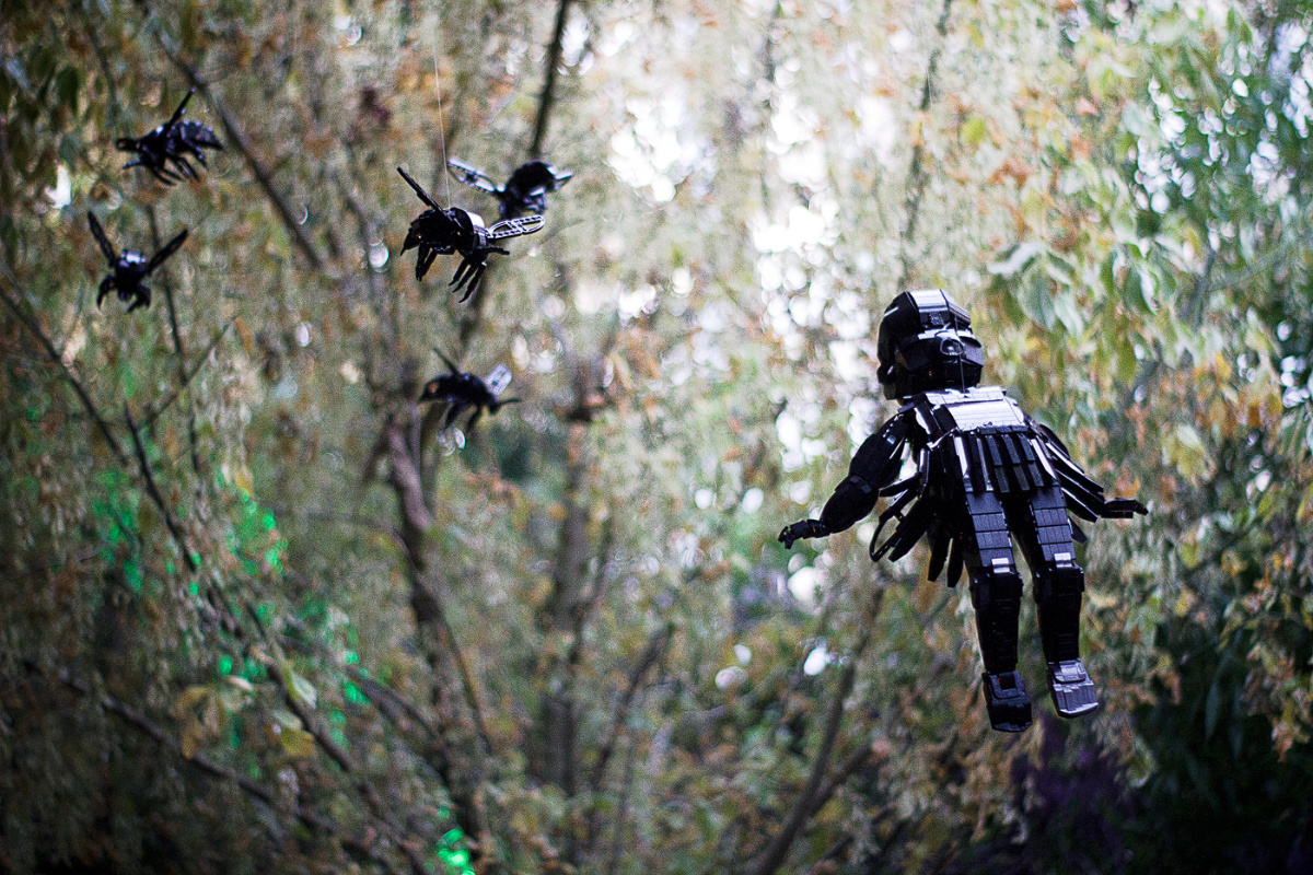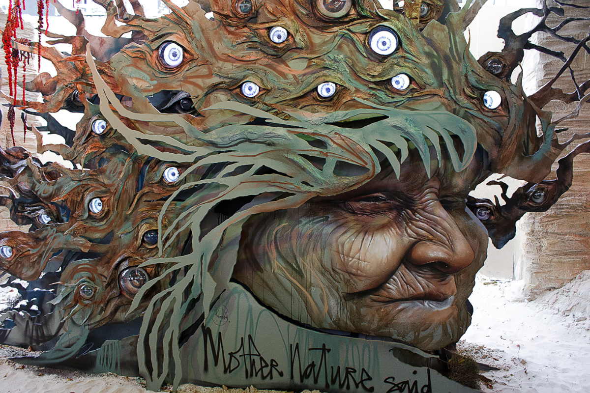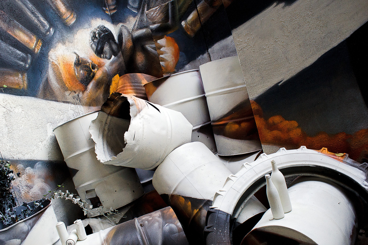 BÜLOWSTRASSE, BERLINEin spannendes, nachdenklich stimmendes und trotz der Beteiligung von 27 KünstlerInnen und Kunstkollektiven unerwartet homogenes Gesamtwerk mit dem Titel „Roboter und Relikte. Un-Bemannt“ erwartete die Besucher der ersten Urban Nation Biennale, die unter der U-Bahn-Trasse vor dem Urban Nation Museum for contamporary Art stattfand. Die 100 Meter lange „Kunstmeile“ führte durch eine zerstörte Stadt, ein Laboratorium, Wüsten, eine Grotte, Wälder, Wiesen und Dschungel und stellte die Frage: „Was wäre, wenn…“