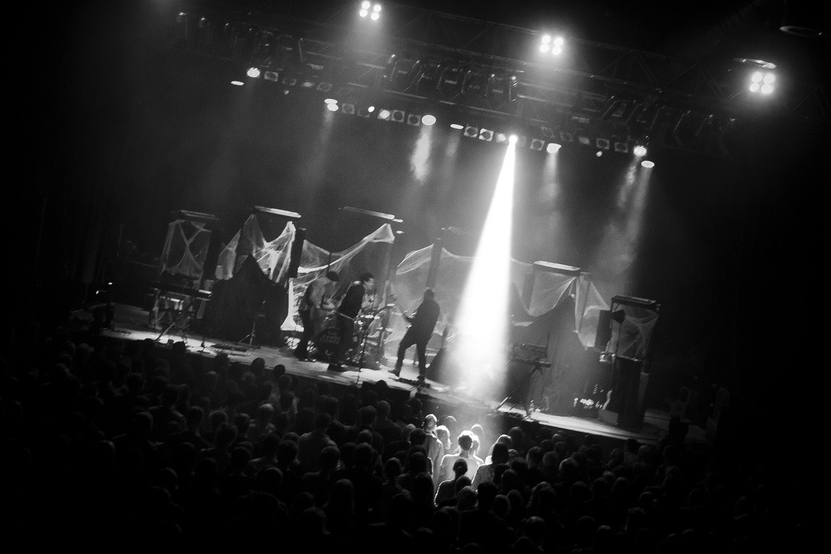 Vom ersten Ton an lag den „White Lies“ nahezu der komplette Saal zu Füssen. „Take it out on me“ vom aktuellen Albums „Friends“ erwies sich als perfekter Konzertauftakt. Ein Refrain, der sich – obwohl relativ neu – bereits gnadenlos ins Gedächtnis vieler Anwesender gebrannt hatte und dementsprechend textsicher mitzelebriert wurde. Und auch beim dritten Titel – dem genialen „To lose my life“ – machten die gesungenen Worte keinen Halt, sondern fanden ohne jegliche Umwege in die Köpfe der Hörerschaft.