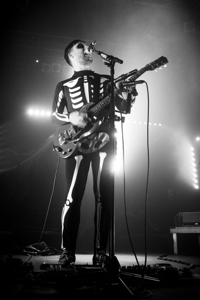 Optisch dominierte Halloween die Bühne, auf der sich die Herren Musiker mit Skelettkostümen, dunkel umrahmten Augen und schwarzem Kapuzenumhang vor dekorativen Spinnweben im Hintergrund tagesaktuell präsentierten. Als weitaus gruseliger erwies sich aber der eine oder andere Mitsingende, der die richtige Tonlage meilenweit verfehlte. Für die einen ein tolles Gemeinschaftsgefühl, für andere etwas schade, hätte man doch gerne noch mehr von der samtweichen Stimme Harry McVeighs gehört. Dieser konnte so hin und wieder seine Stimme schonen und mit einem schwer zu deutenden Lächeln der Darbietung der „Gastsänger“ lauschen.