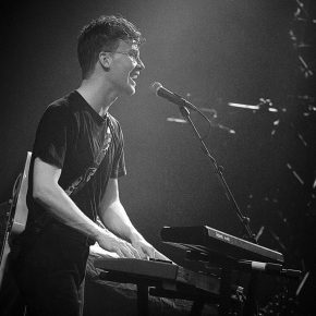 Mit zurückhaltenden Keyboardklängen und ganz ohne den Einsatz von Gitarren startete der Auftritt der „White Lies“. Doch der gefühlsbetonte, über siebenminütige Epos „Time to give“, welcher auch das aktuelle Album eröffnet, lässt nach und nach Raum für weitere Instrumente, um sich gemächlich aufzubauen und die Anwesenden zunehmend auf die noch kommenden Stücke einzustimmen. Bereits mit dem anschließenden Klassiker „Farewell to the Fairground” befand sich das Publikum im Konzertmodus. Weitere Überzeugungsarbeit musste kaum geleistet werden. Mit „Believe it” folgte ein weiterer Song des kürzlich erschienenen fünften, schlicht „Five“ betitelten Albums. Und was für einer. Der Refrain grub sich umgehend voller Macht in die Gehörgänge und setzte sich im Gedächtnis fest. Noch lange hallten die von Harry McVeigh gesungenen Worte des für diese Band so typisch eingängigen Chorus im Kopf nach: