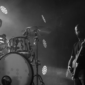 Nach entsprechend lautstarker Aufforderung kam überraschenderweise nur Harry McVeigh zurück auf die Bühne, um am Keyboard Platz zu nehmen und das sehr gefühlvolle „Change“ zum Besten zu geben. Ein Kontrapunkt zu den anderen, zum Mitsingen animierenden Stücken. Als mindestens ebenso ungewöhnlich dürfte die Wahl der zweiten Zugabe bezeichnet werden: „Fire and Wings“ vom aktuellen Album. Der für die White Lies wenig exemplarische Song hat sich seinen Platz an dieser Stelle jedoch sehr wohl verdient. Ein schleppendes Schlagzeug und eine zuweilen rockige Gitarre sorgten für einen weiteren angenehmen Gegenpol. Mit einem der bekanntesten Stücke – „Bigger Than Us“ – mobilisierte die Band noch einmal alle Kräfte, bevor nach etwa 100 Minuten ein kurzweiliger Auftritt sein Ende fand und die Melodien und Worte vieler Titel im Geiste nachhallten…