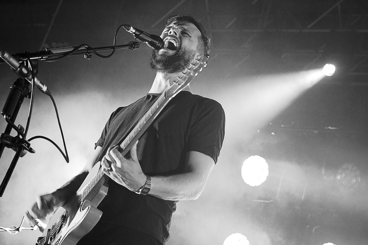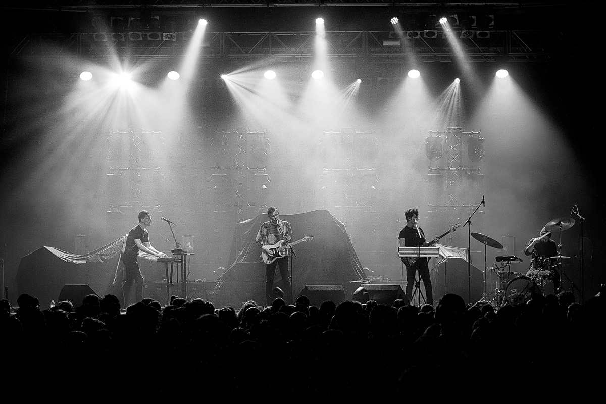 Mit zurückhaltenden Keyboardklängen und ganz ohne den Einsatz von Gitarren startete der Auftritt der „White Lies“. Doch der gefühlsbetonte, über siebenminütige Epos „Time to give“, welcher auch das aktuelle Album eröffnet, lässt nach und nach Raum für weitere Instrumente, um sich gemächlich aufzubauen und die Anwesenden zunehmend auf die noch kommenden Stücke einzustimmen. Bereits mit dem anschließenden Klassiker „Farewell to the Fairground” befand sich das Publikum im Konzertmodus. Weitere Überzeugungsarbeit musste kaum geleistet werden. Mit „Believe it” folgte ein weiterer Song des kürzlich erschienenen fünften, schlicht „Five“ betitelten Albums. Und was für einer. Der Refrain grub sich umgehend voller Macht in die Gehörgänge und setzte sich im Gedächtnis fest. Noch lange hallten die von Harry McVeigh gesungenen Worte des für diese Band so typisch eingängigen Chorus im Kopf nach: